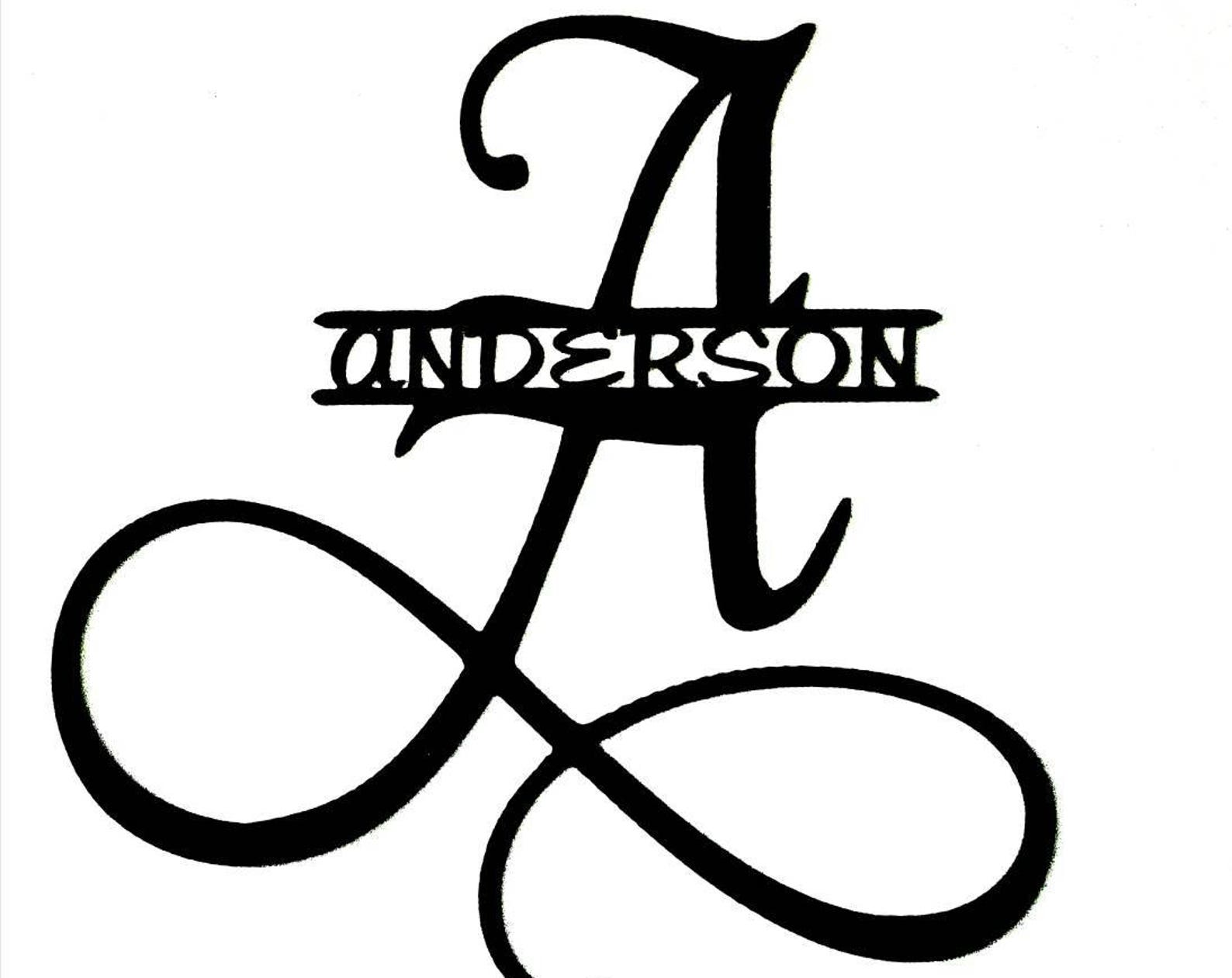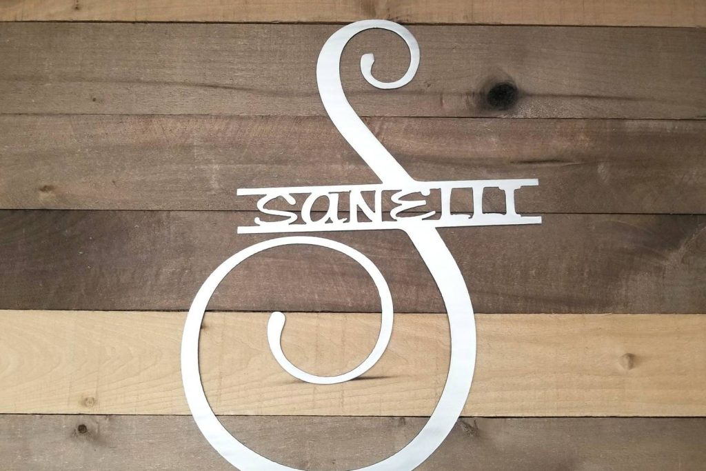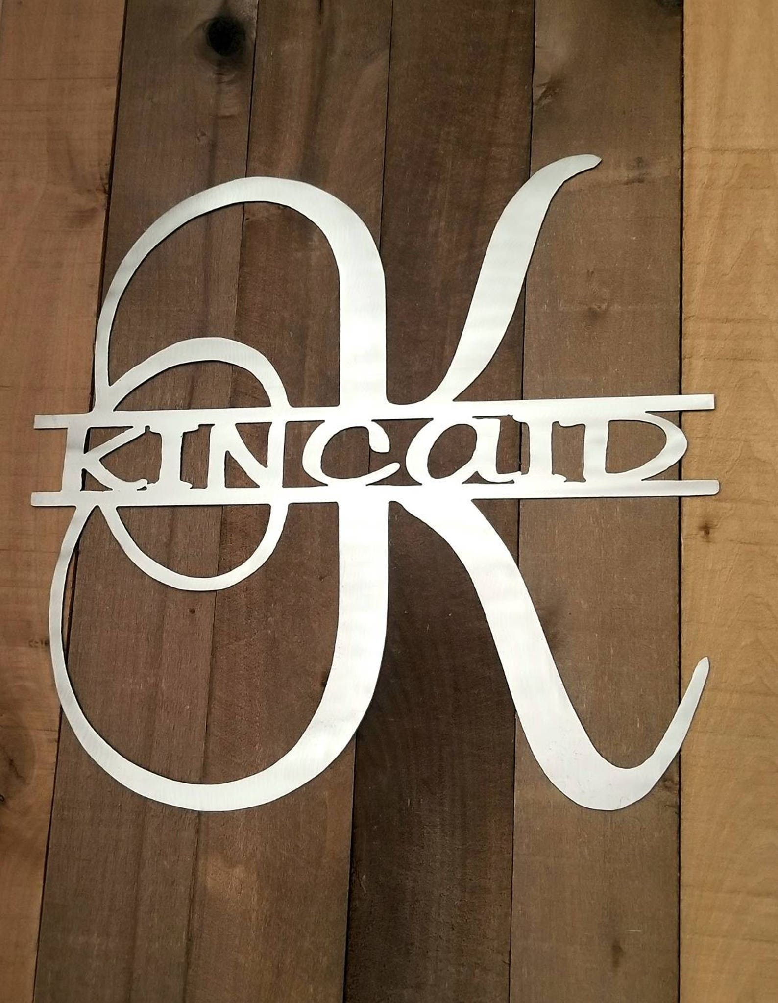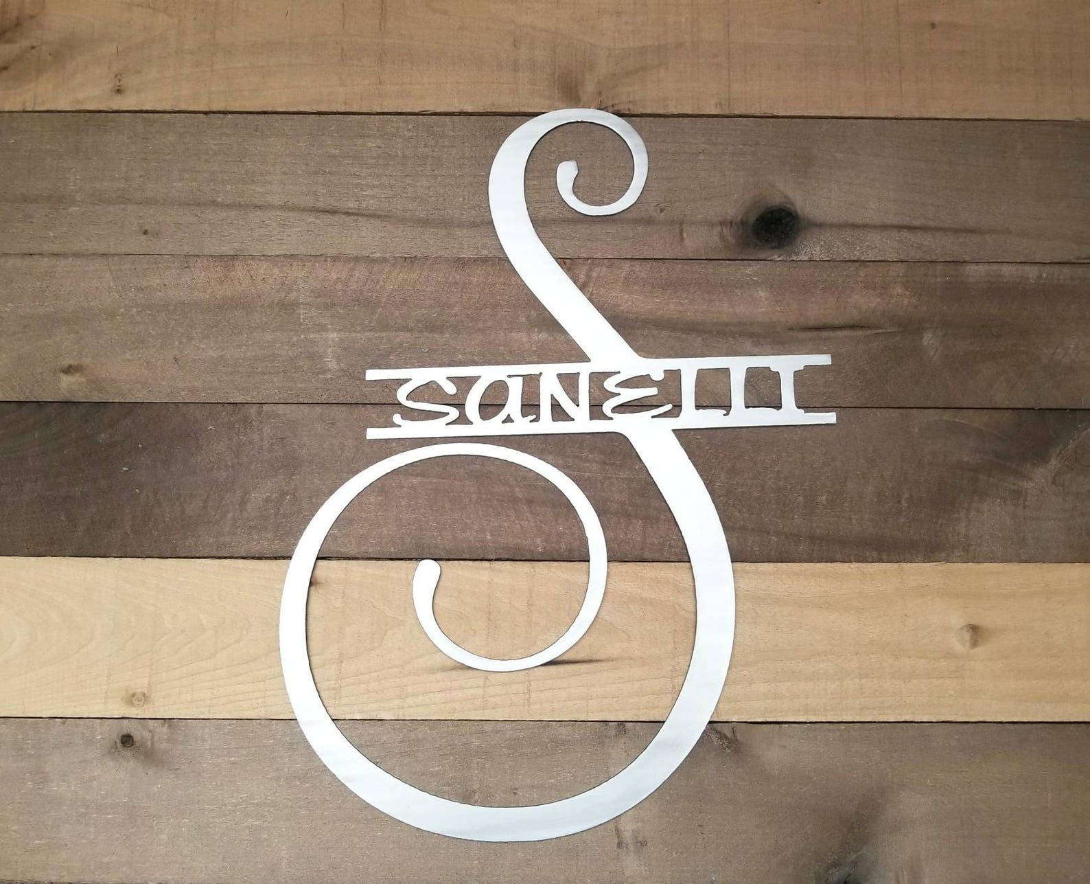 Split Last Name Monogram with Last Name Initial | Metal Art Sign with Scrolls | Custom Metal Sign | Personalized Family Name Wall Decor