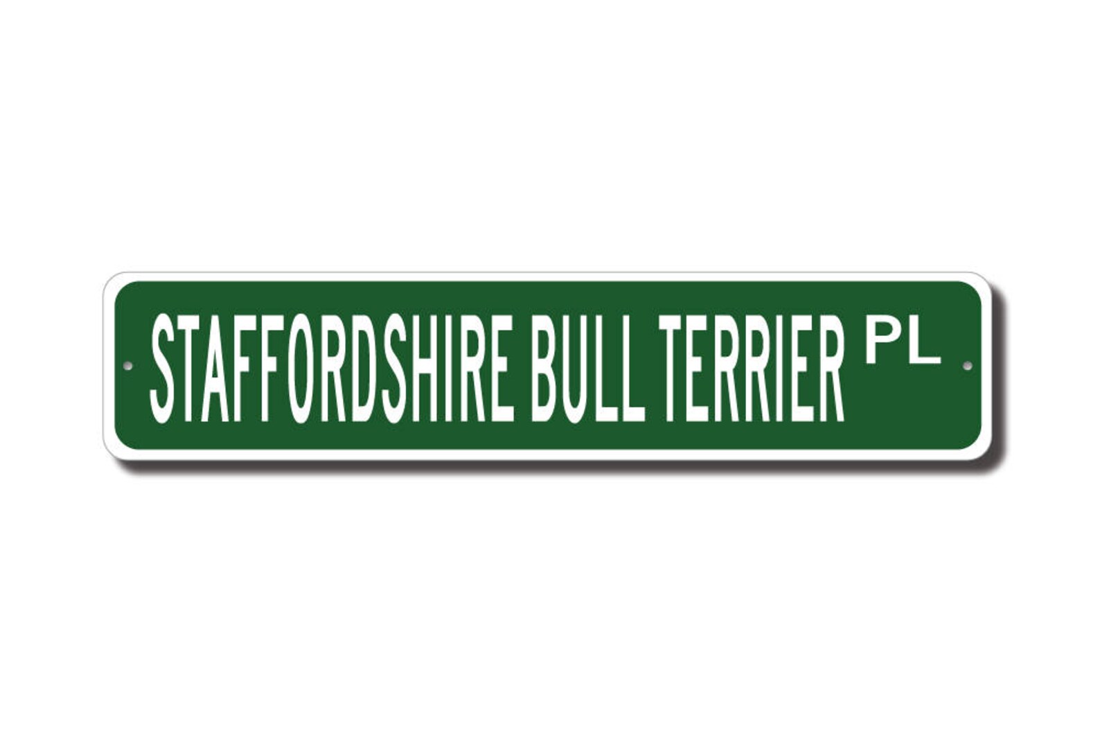 Staffordshire Bull Terrier lovers check out this awesome street sign! This will make the perfect piece for any Staffordshire Bull Terrier lover or Staffordshire Bull Terrier cave. Made of premium aluminum it will stand the test of time. This sign will look great in any room, garage, barn or office! Get this sign for your favorite friend that loves a Staffordshire Bull Terrier !