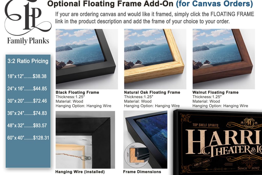 We will install a sawtooth hanger on the back of your canvas or leave it off if requested.