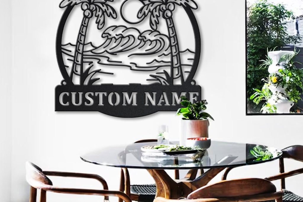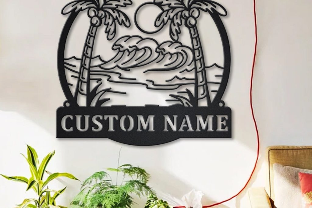 Summer Palm Tree Metal Sign with LED – Vacation Decor