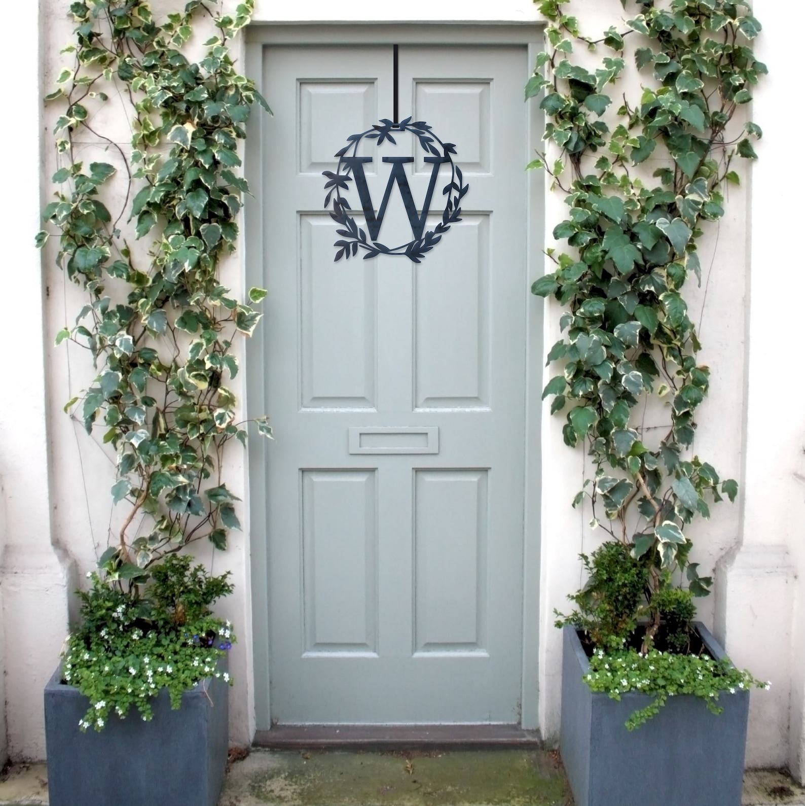 Add some decor to your door! Let me help you create your own custom metal monogram sign. This letter door hanger makes the perfect year-round entryway wreath that will last!
