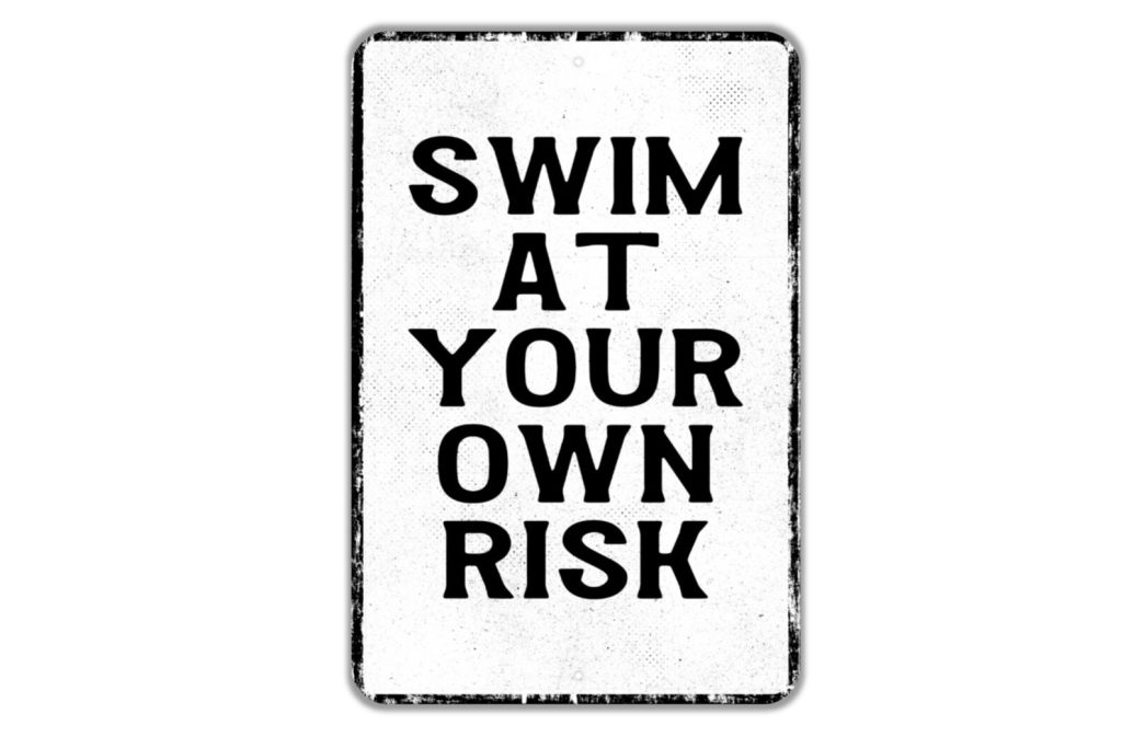 Be the first to review “Swim at Your Own Risk Sign: Distressed Metal Art”