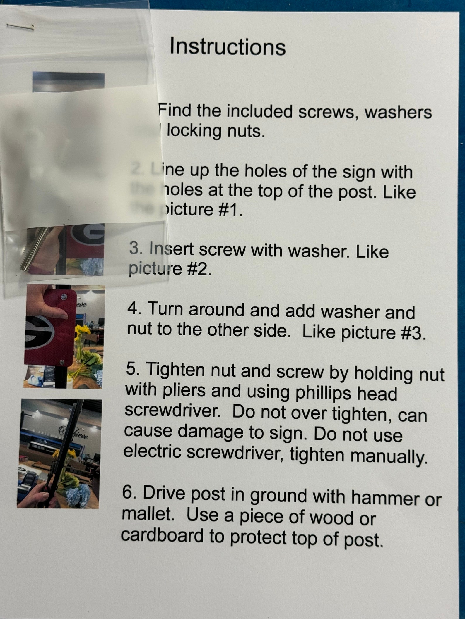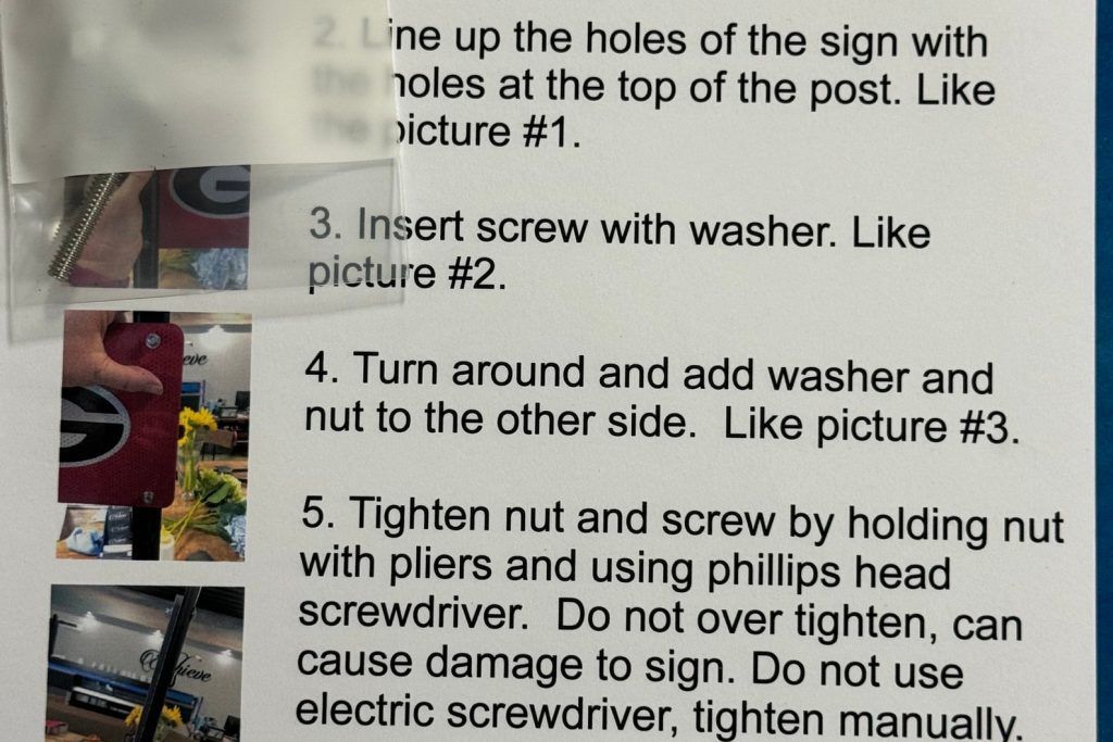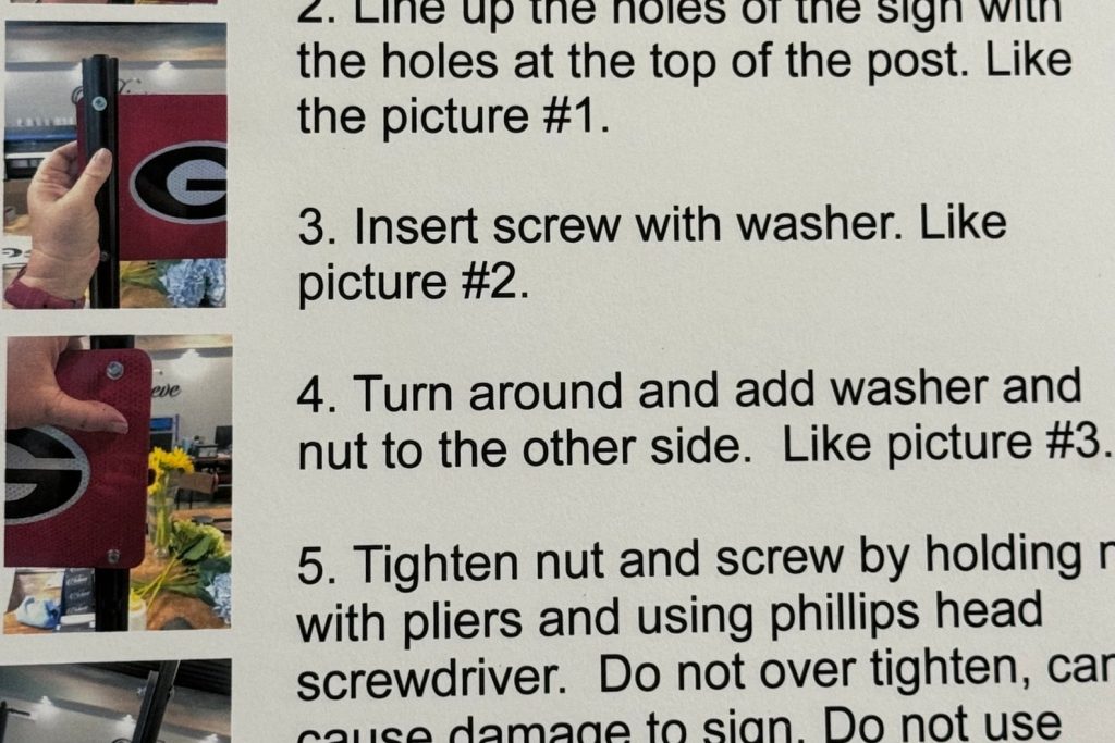 This double-sided sign comes with a metal post that measures 36 inches tall and 1.5 inches wide, making it easy to install in your yard or garden. And, because it9;s double-sided, your address or message can be seen from either direction.