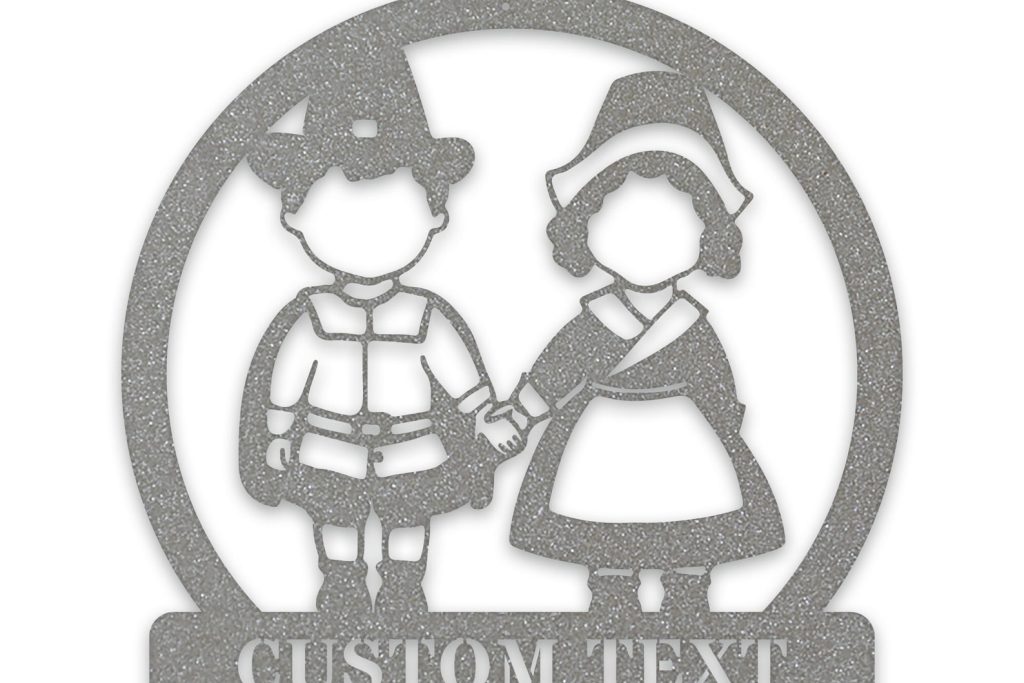 Fill your home with gratitude and appreciation with this beautiful Thanksgiving Pilgrim Couple Metal Sign Decor! This eye-catching design features a traditional pilgrim couple with your custom text. Add a charming touch to your decor and spread the feeling of thanksgiving all year round.
