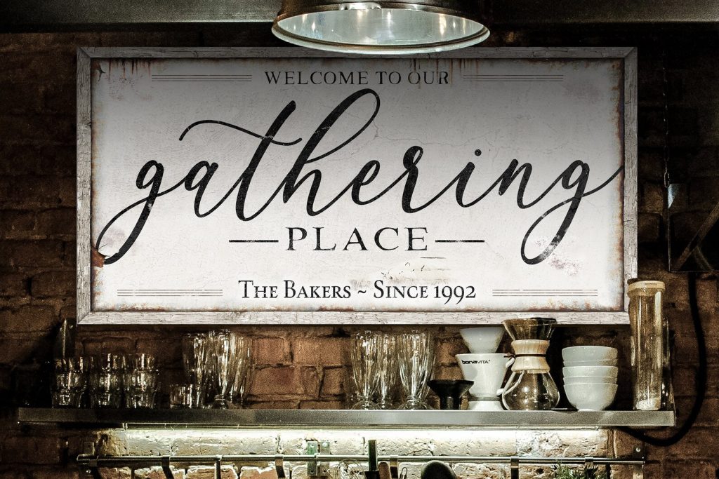 This Gathering Place Family Name Sign offers a rustic, modern farmhouse look and feel. Display this personalized wall decor with your last name and established date anywhere in your home or on the porch. It adds warmth and primitive beauty to any wall.