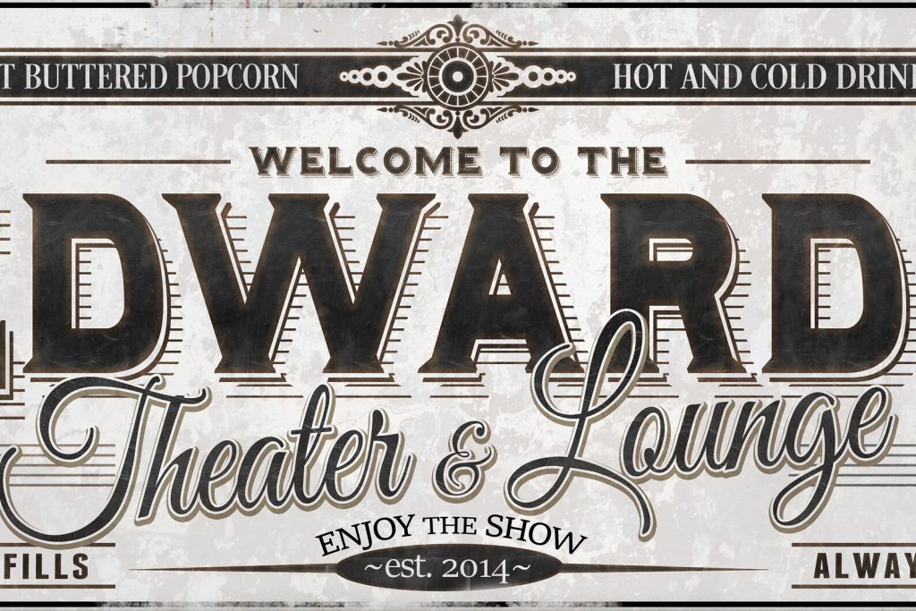 Theater Lounge Metal Sign, Custom Family Name, Large Wall Art