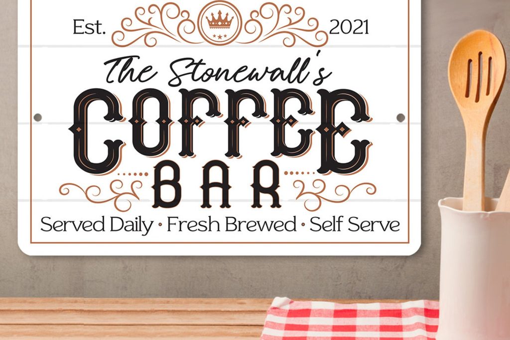 Tin – Personalized Coffee Bar Metal Sign – 8" x 12" or 12" x 18" Use Indoor/Outdoor – Coffee Shop Decor