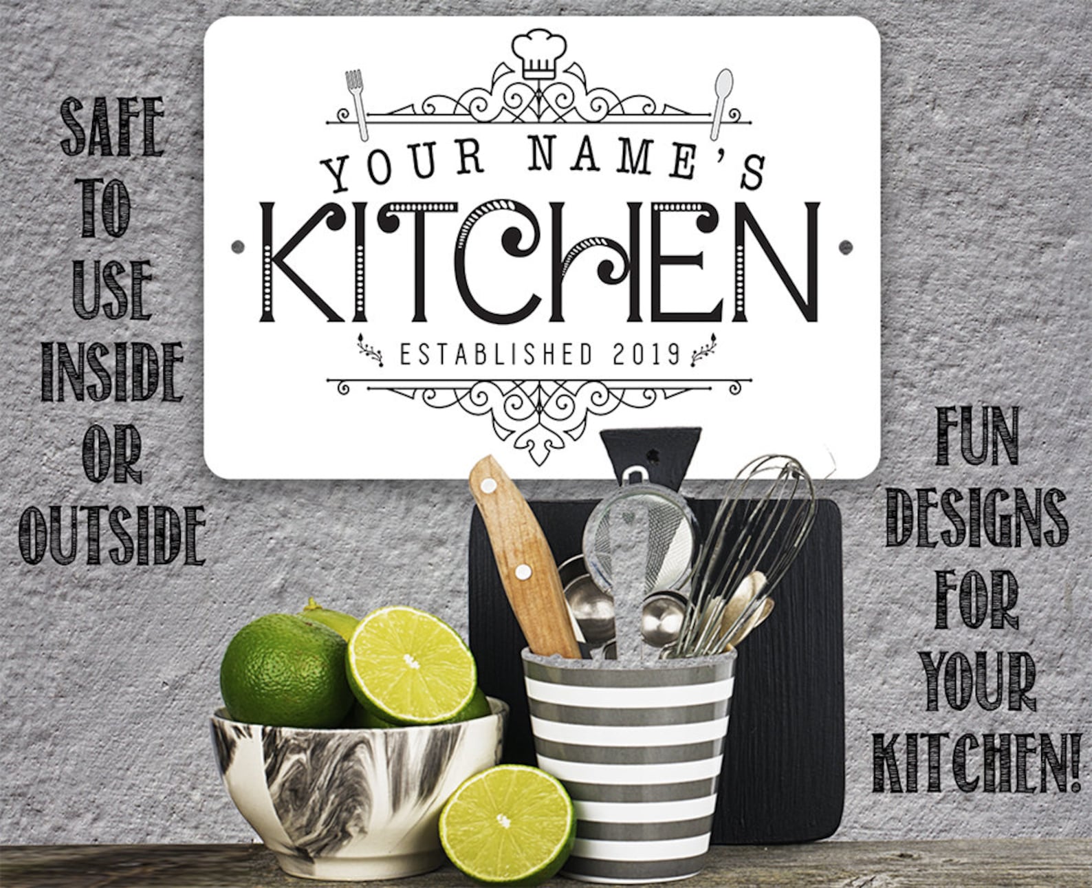 Personalized Kitchen Sign – Durable Metal Sign – 8" x 12" or 12" x 18" Use Indoor/Outdoor-Housewarming Gift and Kitchen and Restaurant Decor