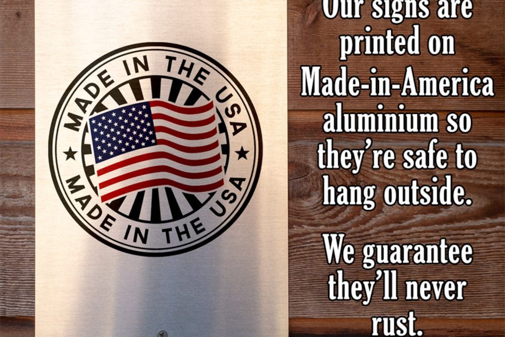 Durable – 8" x 12" or 12" x 18" Aluminum metal sign printed with epoxy ink so you can proudly hang it inside or outside