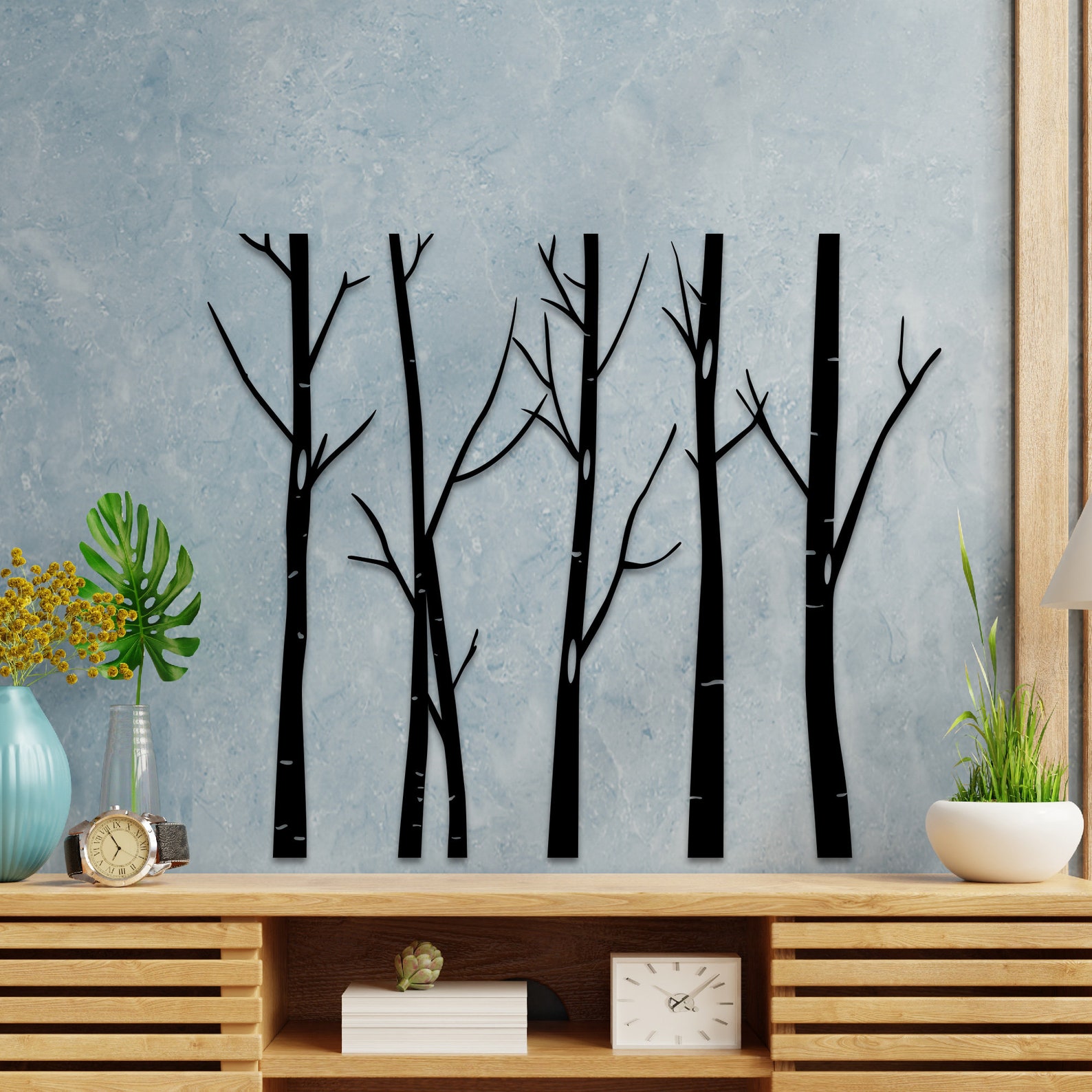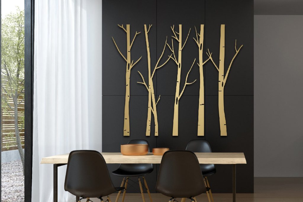 Tree Metal Wall Decor, Branch Metal Tree Wall Art, 5 Pieces Trees Sign, Metal Wall Decor, Stripes Wall Decor, Home Decoration, Wall Hangings