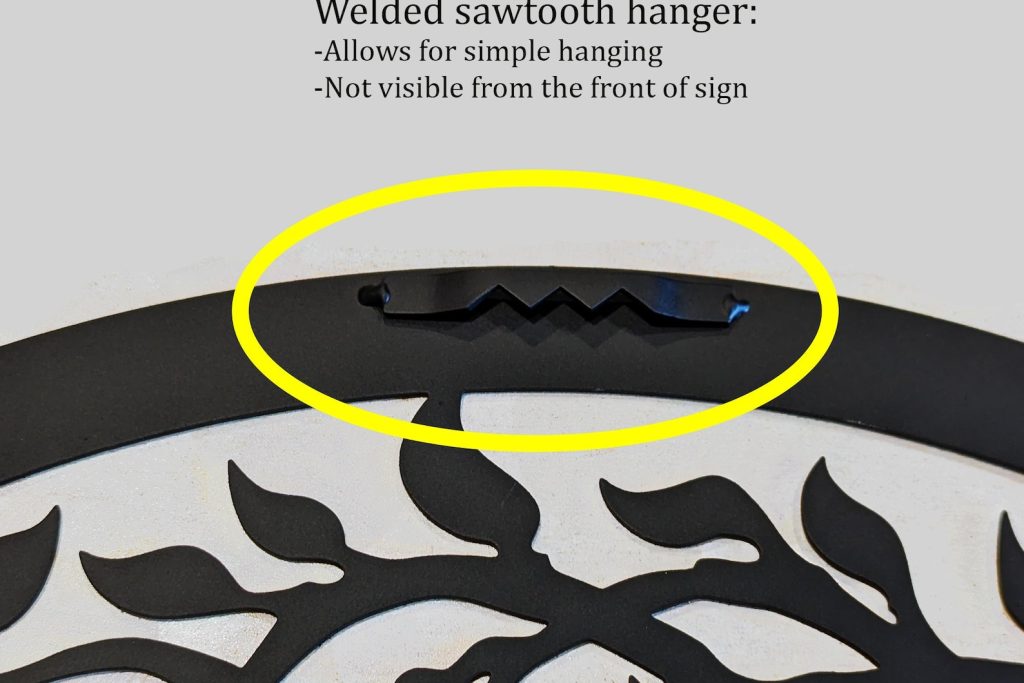 Available in multiple sizes, there is one that will fit your wall that is in need of some style and dcor. Cut from heavy duty 16 gauge steel this sign is very sturdy while maintaining the perfect weight for hanging. You can easily mount this sign using the bracket incorporated into the backside of the sign. This sign has a powder coat finish to make it weather resistant, so mount it indoors or outdoors.