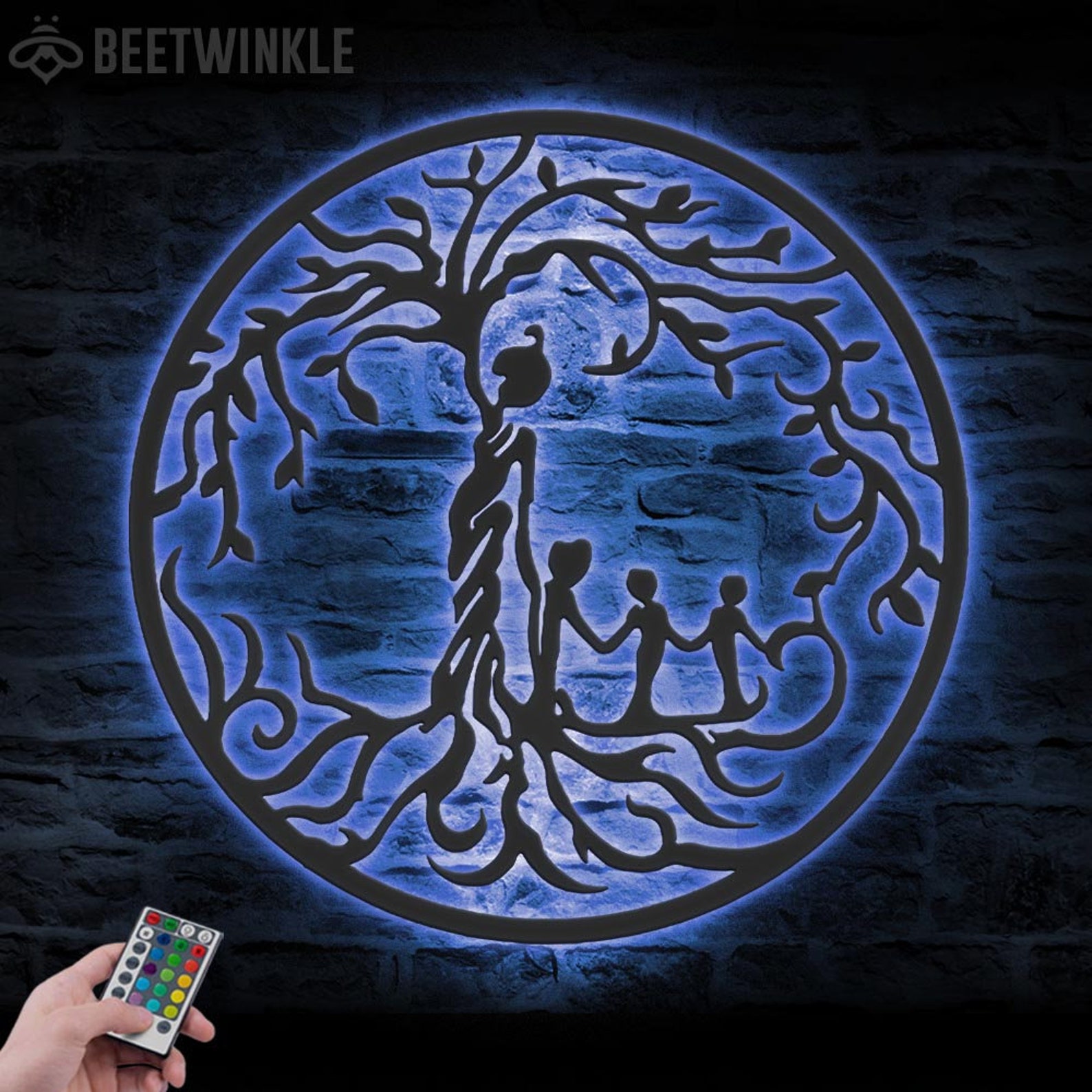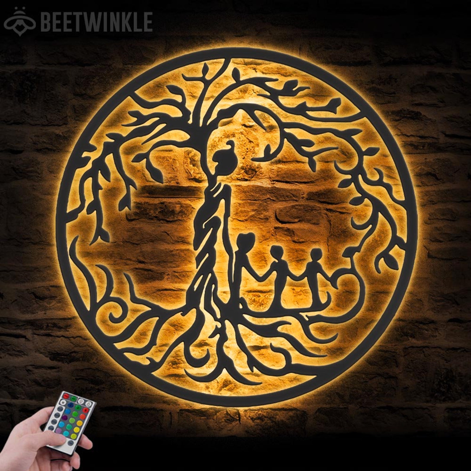 – Remote control: You can use the remote to turn the lights on and off, change the color to one of 16 vibrant colors, adjust brightness, cycle through the colors and set a timer.