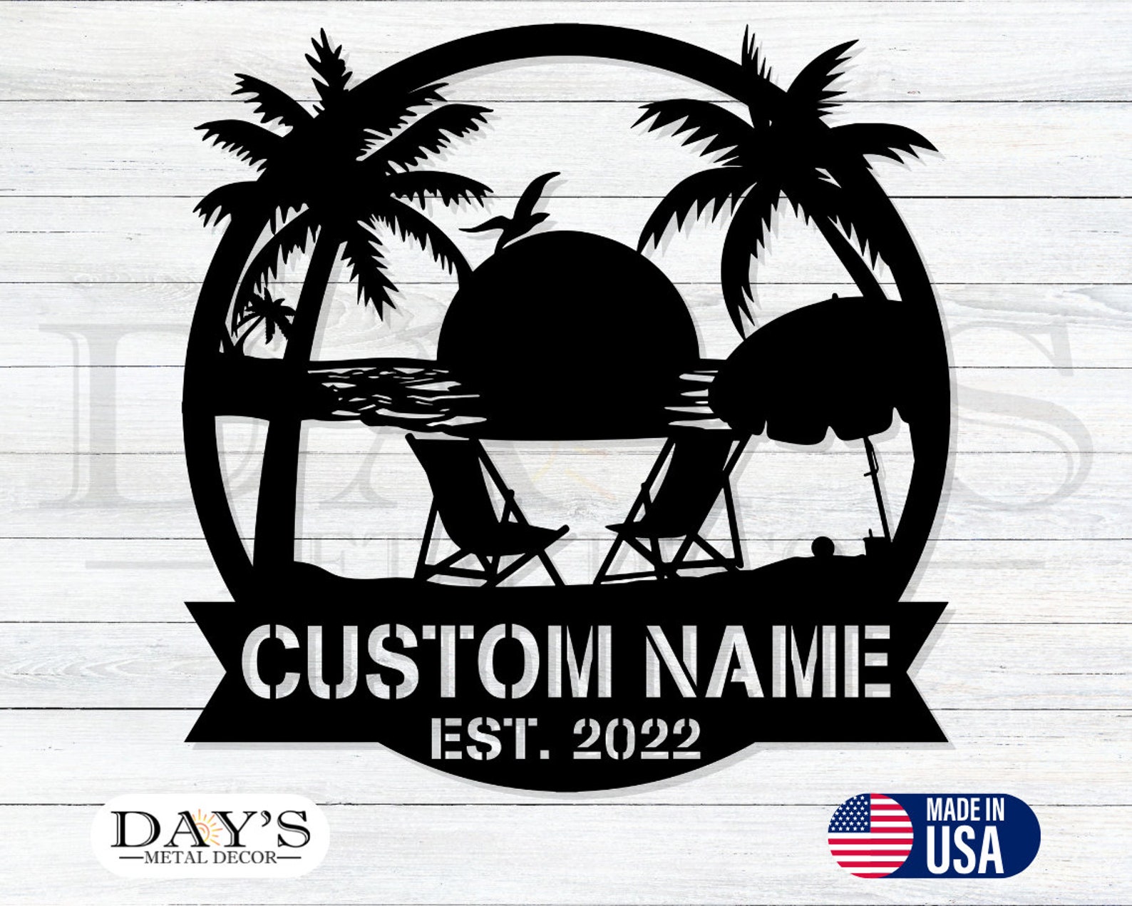 Be the first to review “Tropical Themed Personalized Metal Sign – Beach House Decor, Backyard Sign”