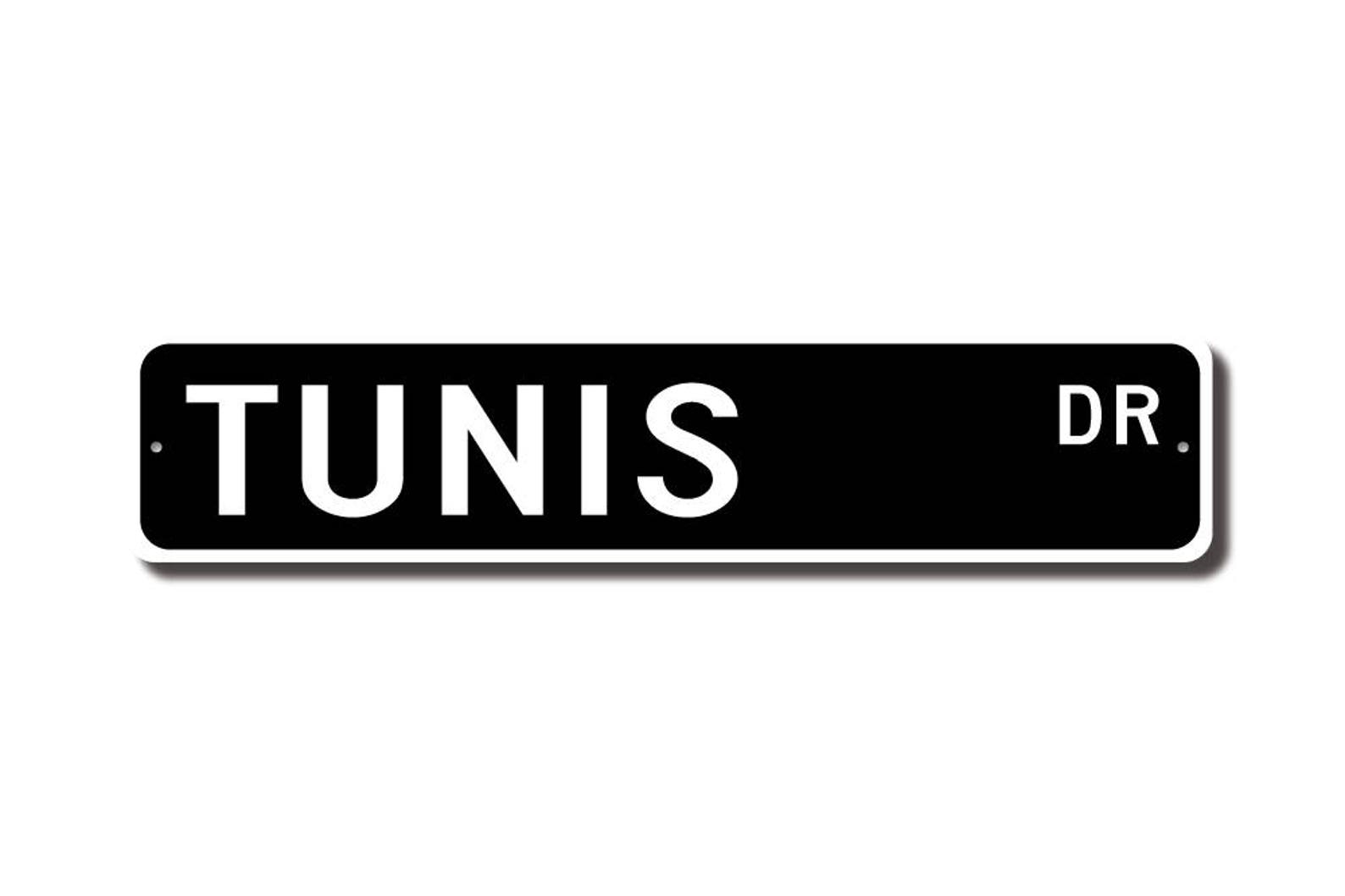 Tunis lovers check out this awesome street sign! This will make the perfect piece for any Tunis traveler, or maybe you are a Tunis native looking for a cool decor piece ! Made of premium aluminum -it will stand the test of time. This sign will look great in any room, home den, man cave, or office! Get this sign to commemorate your trip to Tunis !