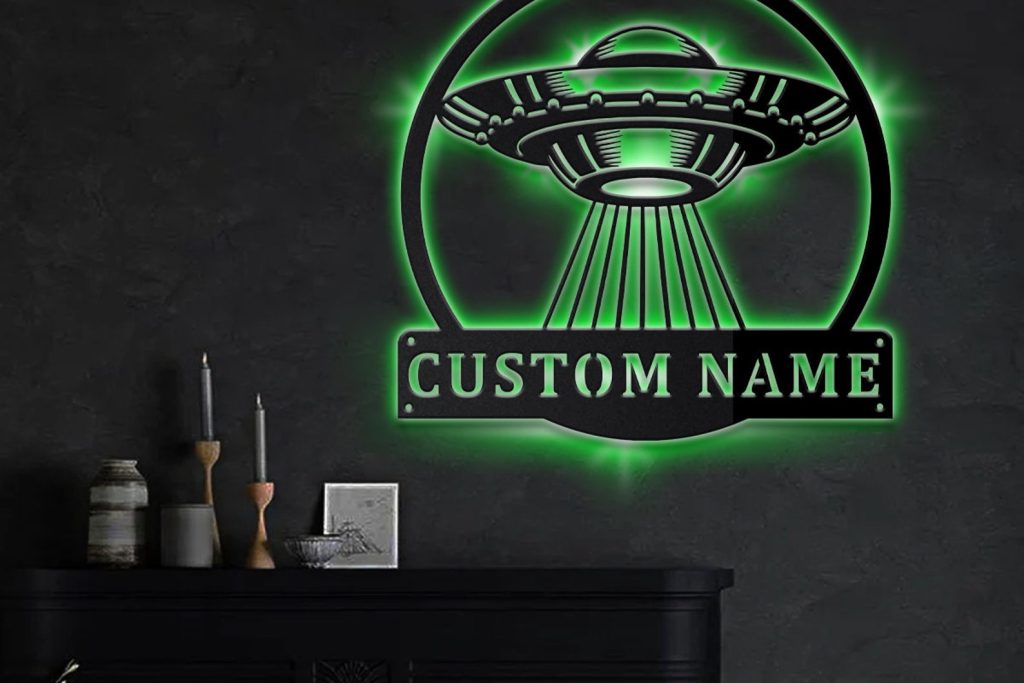 Be the first to review “UFO Monogram Metal Sign with LED Lights”