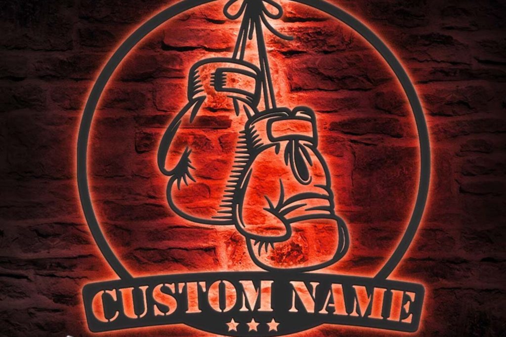 Be the first to review “US Boxing Gloves Art – Personalized Metal LED Boxer Wall Sign”