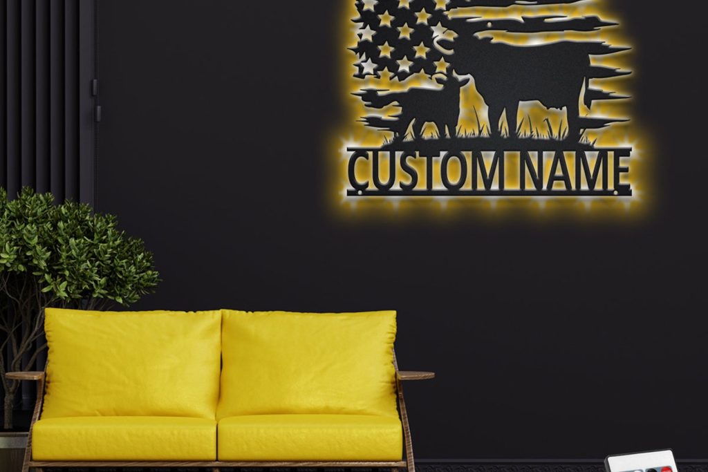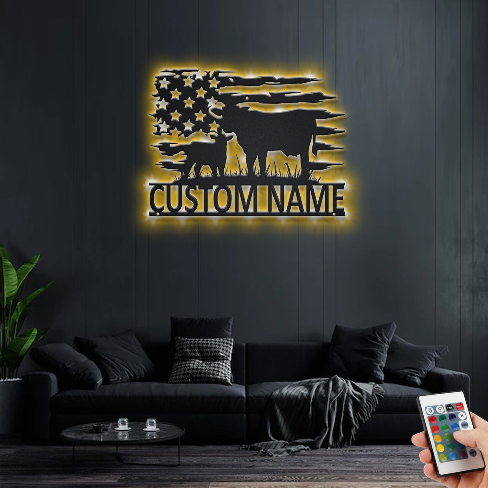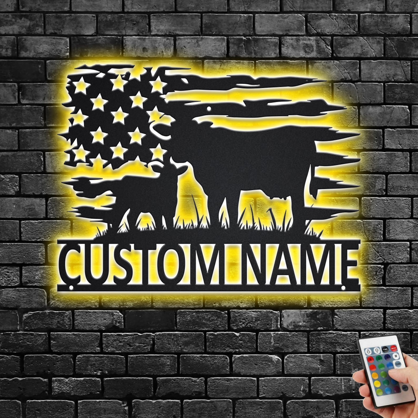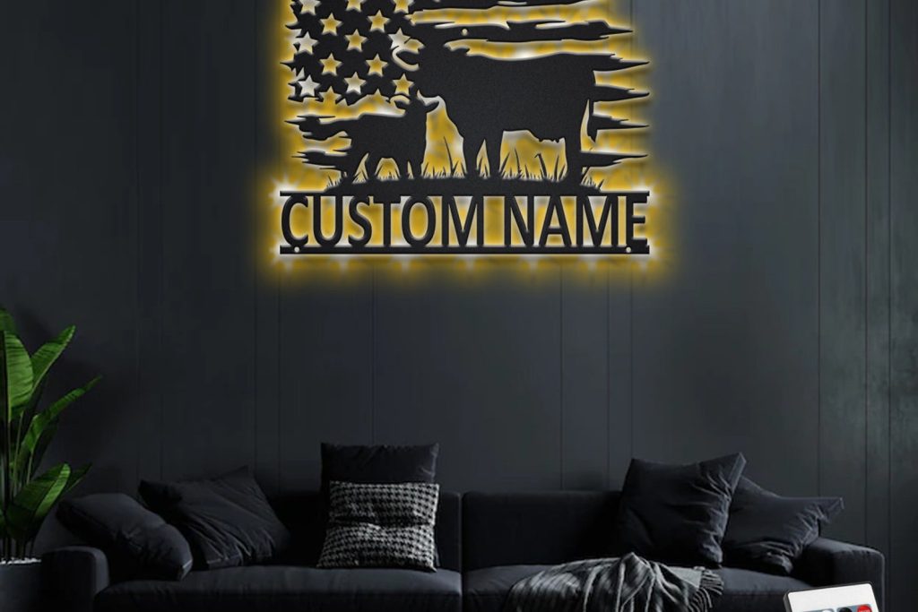 US Cow Farm Art – LED Personal Name Sign, Living Room