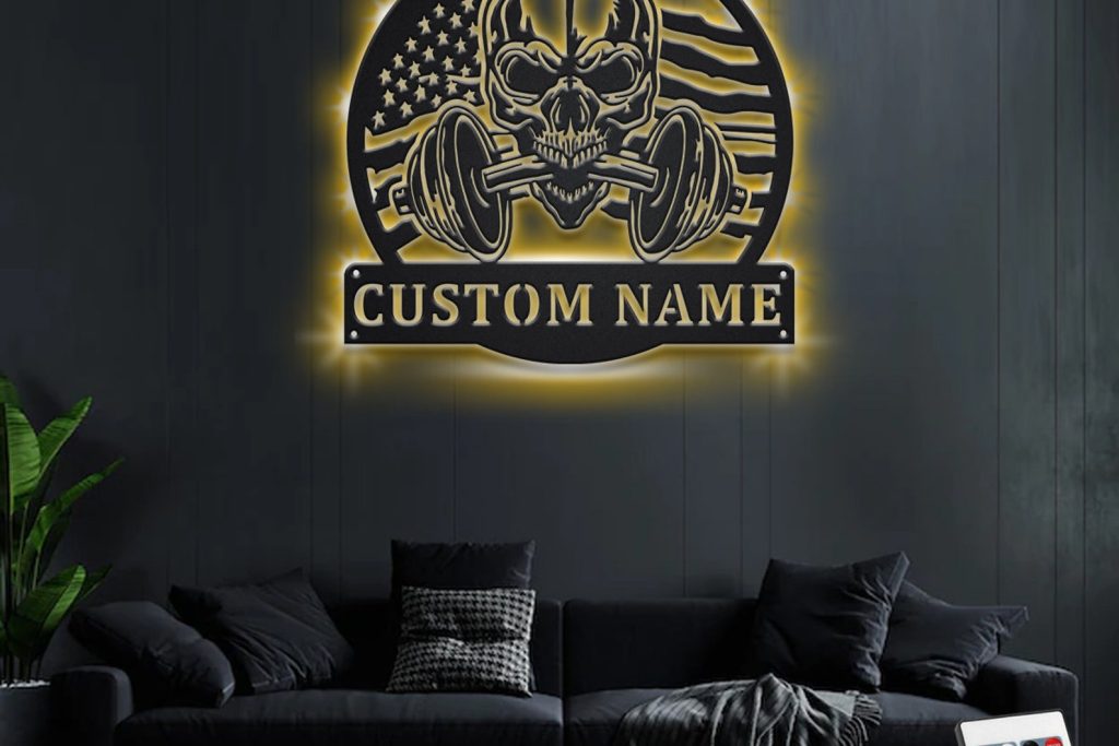 Be the first to review “US Flag Skull Art – Personalized Metal LED Fitness Wall Sign”