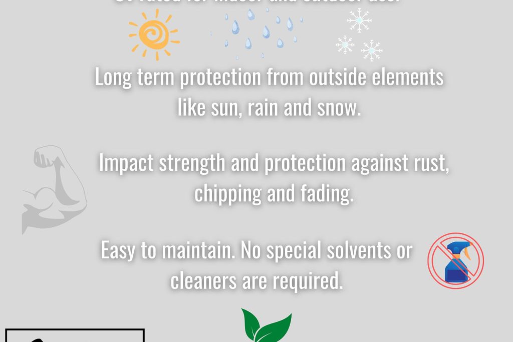 Available in multiple powder coat colors. Our powder coat is UV rated for added weather protection from rusting, chipping and the outside elements like sun, rain and snow.