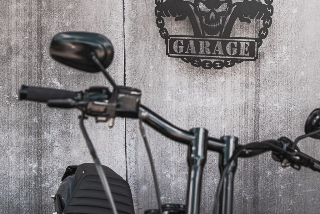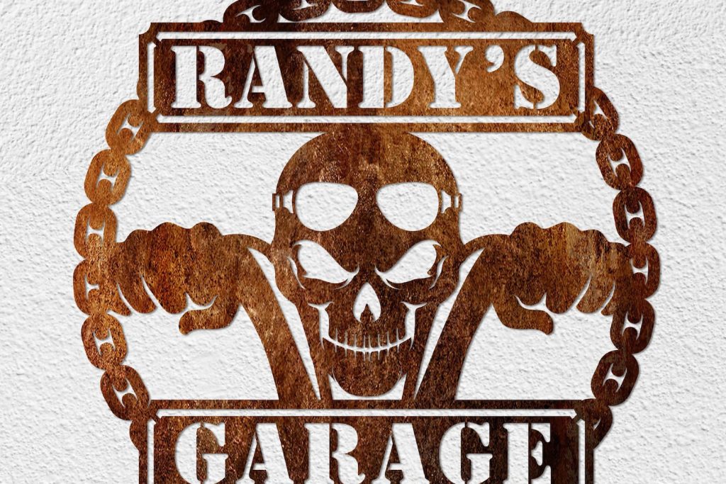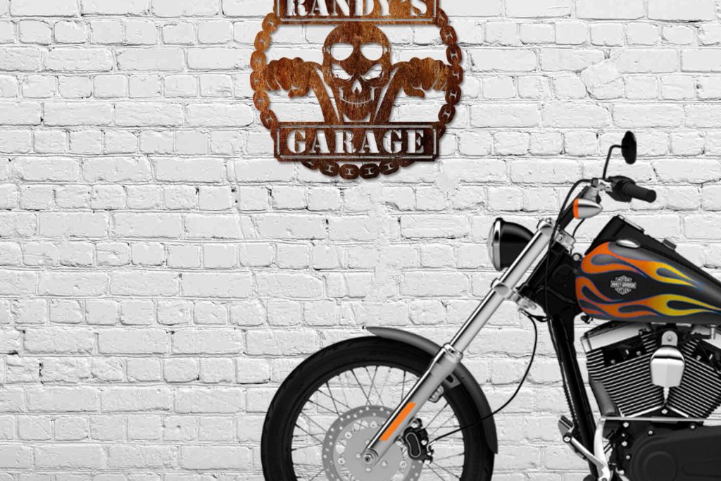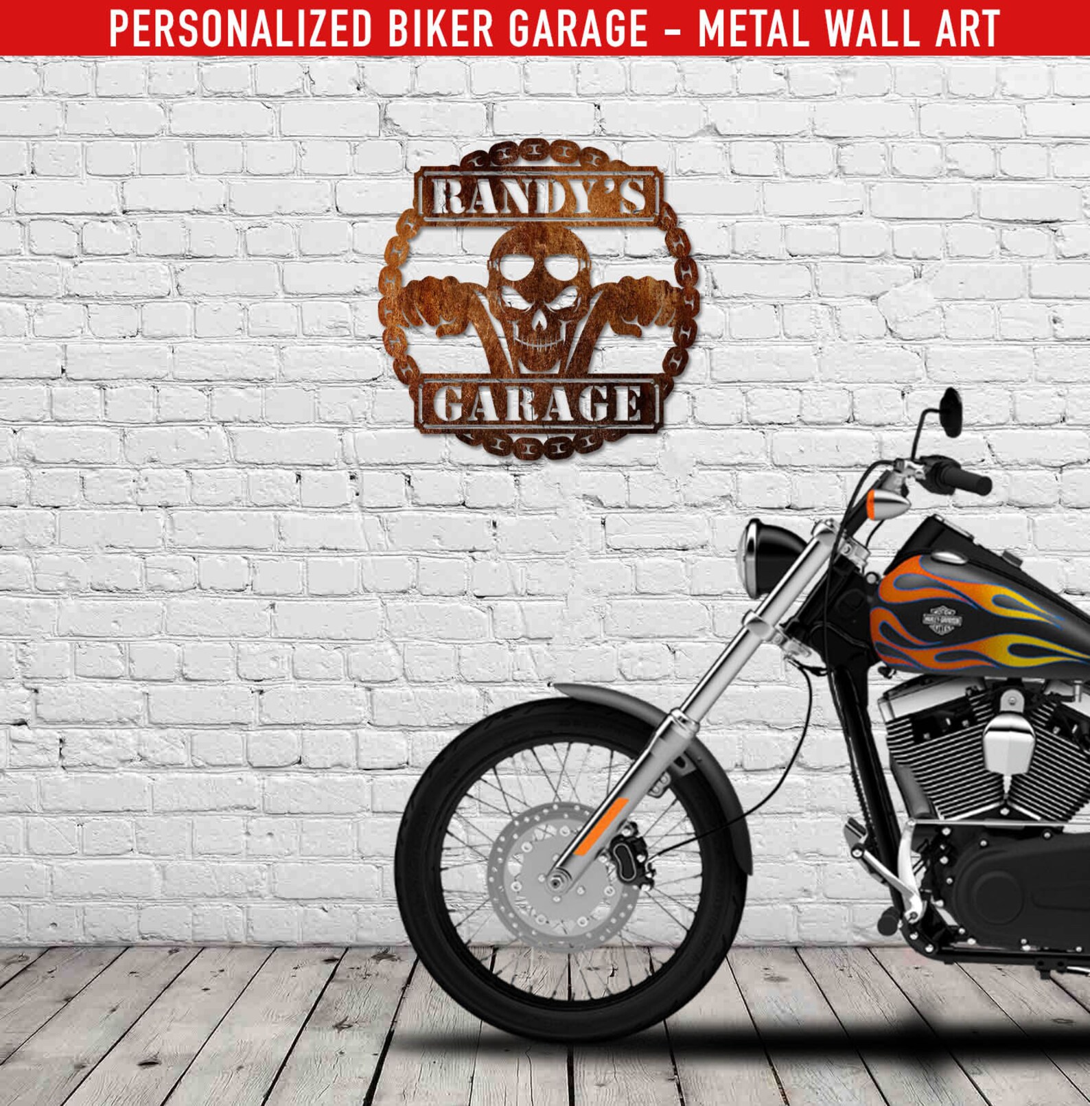 Sweet Ride9;s laser-cut Biker Skull Personalized Garage Sign is the perfect addition to your man cave or garage