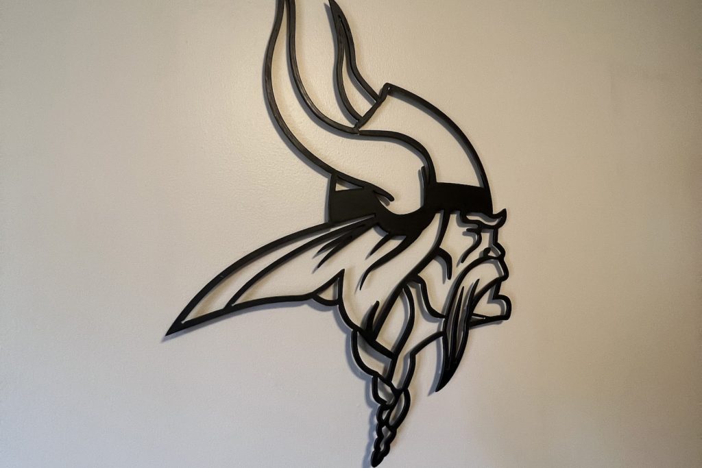 Show your team spirit with our Vikings Emblem Metal Sign, featuring the iconic Minnesota Vikings logo. Handcrafted by Metalcore Welding & Repair, this black metal sign is laser-cut and custom-sized for your ultimate fan cave.