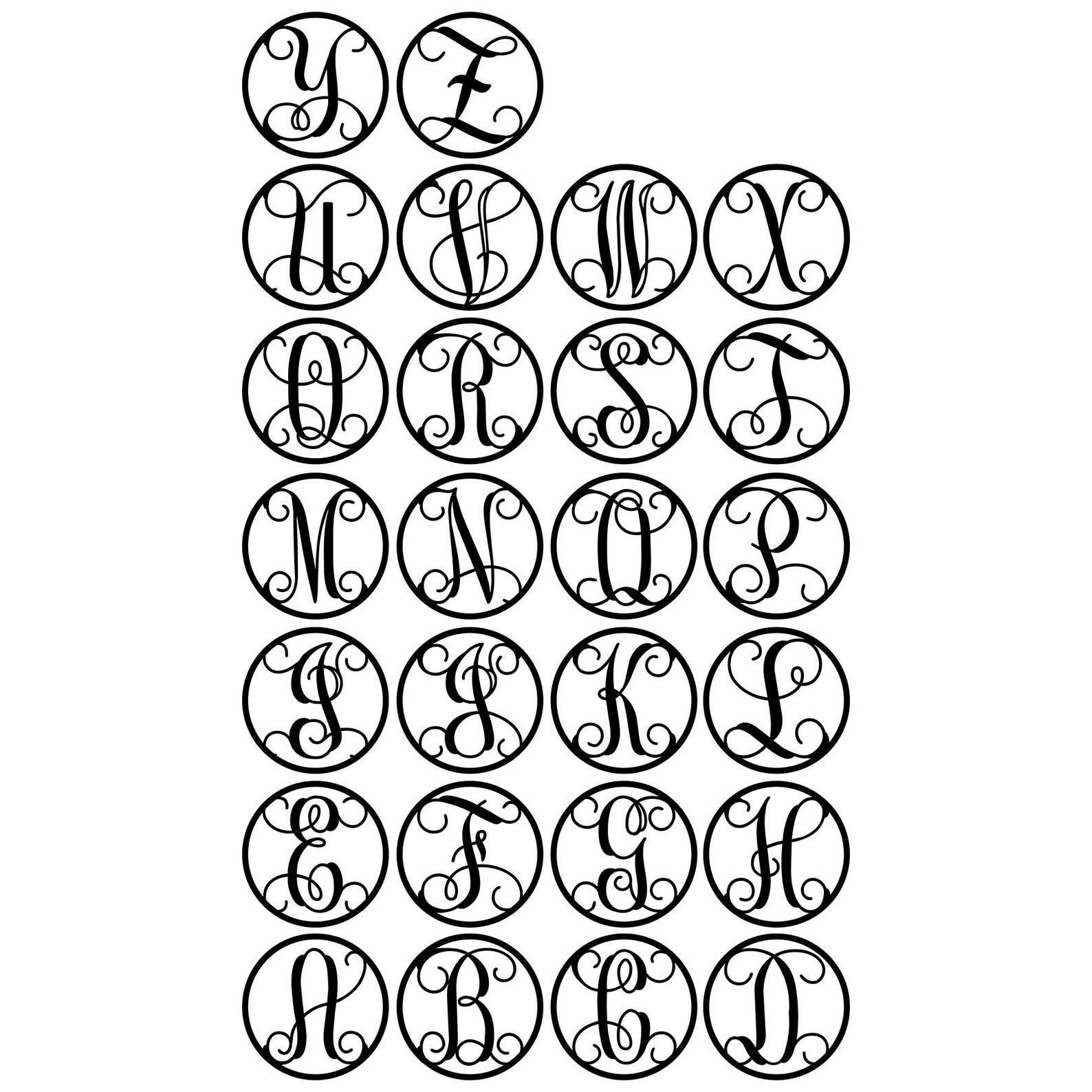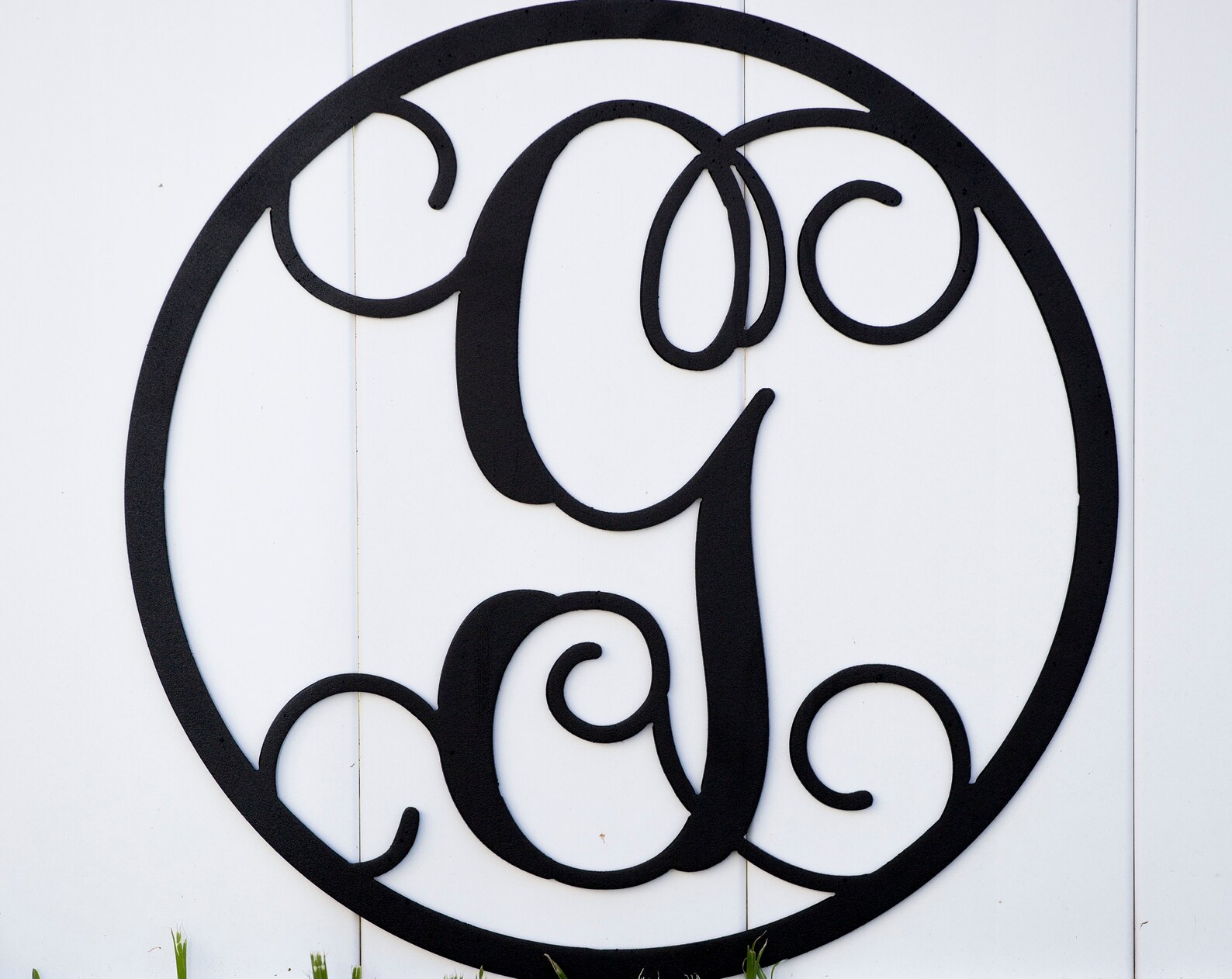 Circle monogram vine letter metal sign. Powder coated for weather resistance. Hanging hole provide on all sizes.