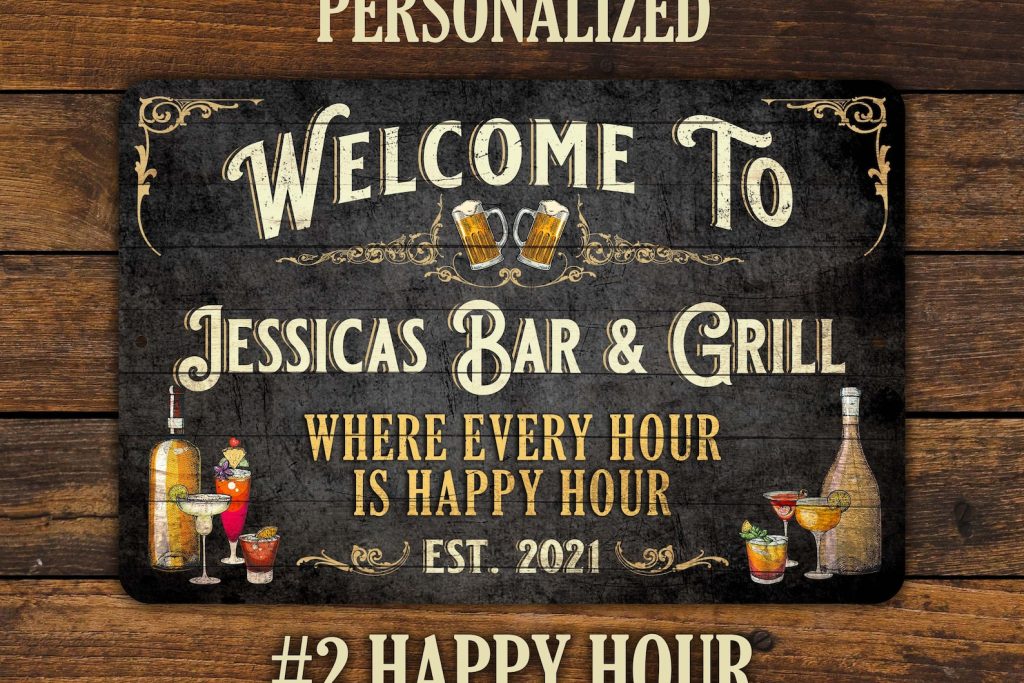 Customize the sign with your own special bar name to make it truly unique. Whether you9;re decorating your bar, basement, garage, workshop, kitchen, or outdoor grill, this sign is the perfect addition.