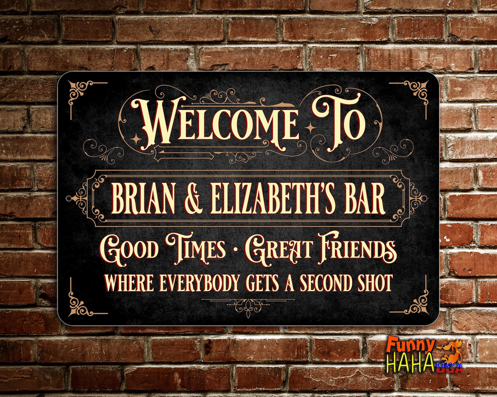 Personalized Vintage Design Metal Bar Sign | Customize this sign | Great Gift | Customize this sign with your personal bar name. Designed with a vintage antiqued look. This sign will look great in any bar, home bar, basement, garage, deck, or patio.