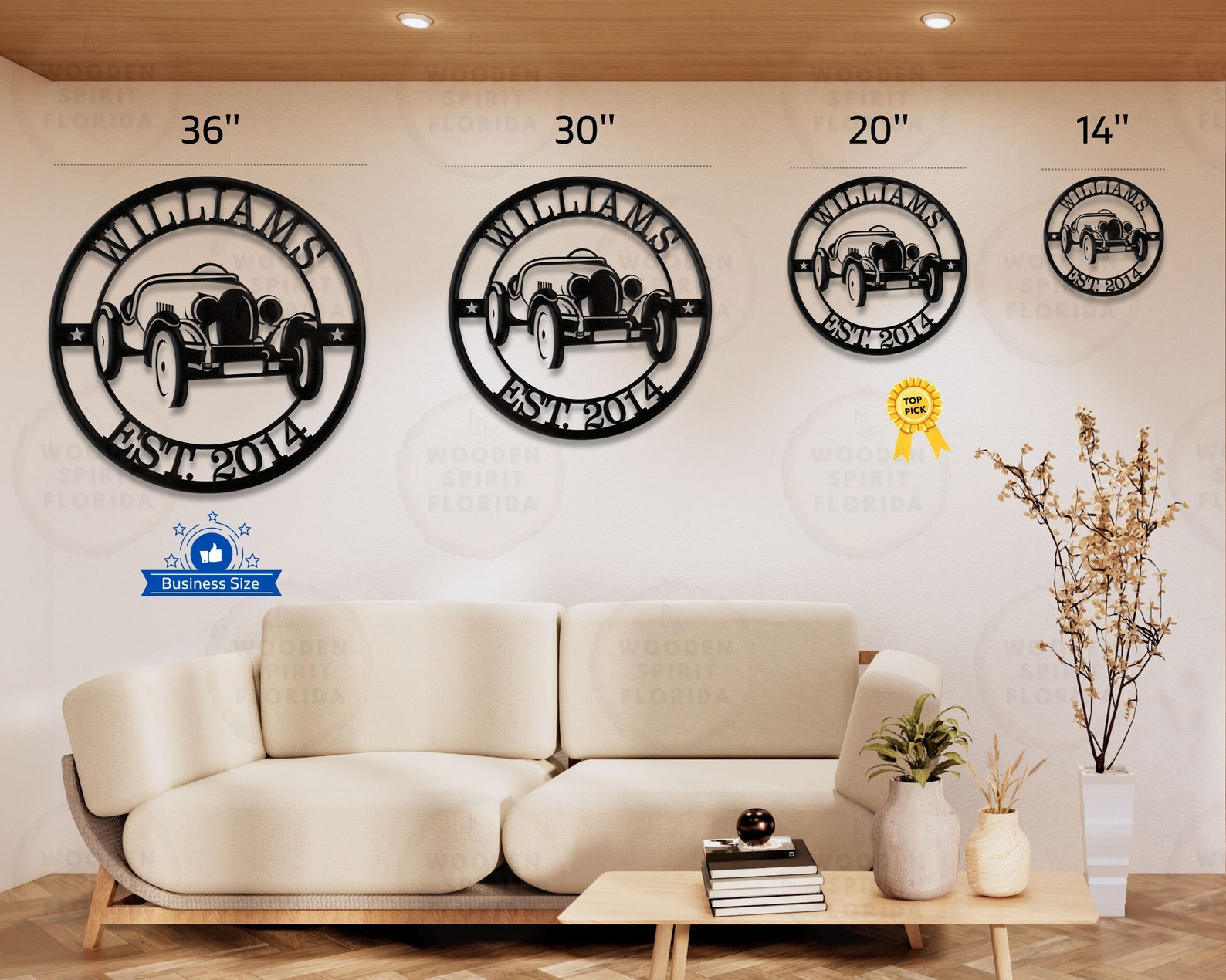 Vintage Car Racing Wall Art – Custom Metal Retro Garage Decor, Personalized Race Car Sign