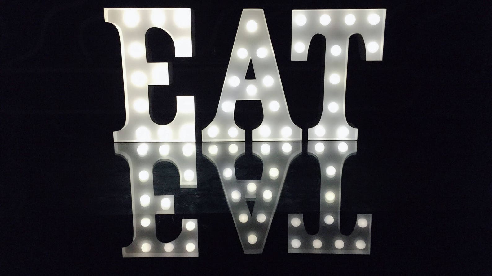 Be the first to review “Vintage Hand Made Light up Letters – EAT Sign Decor”