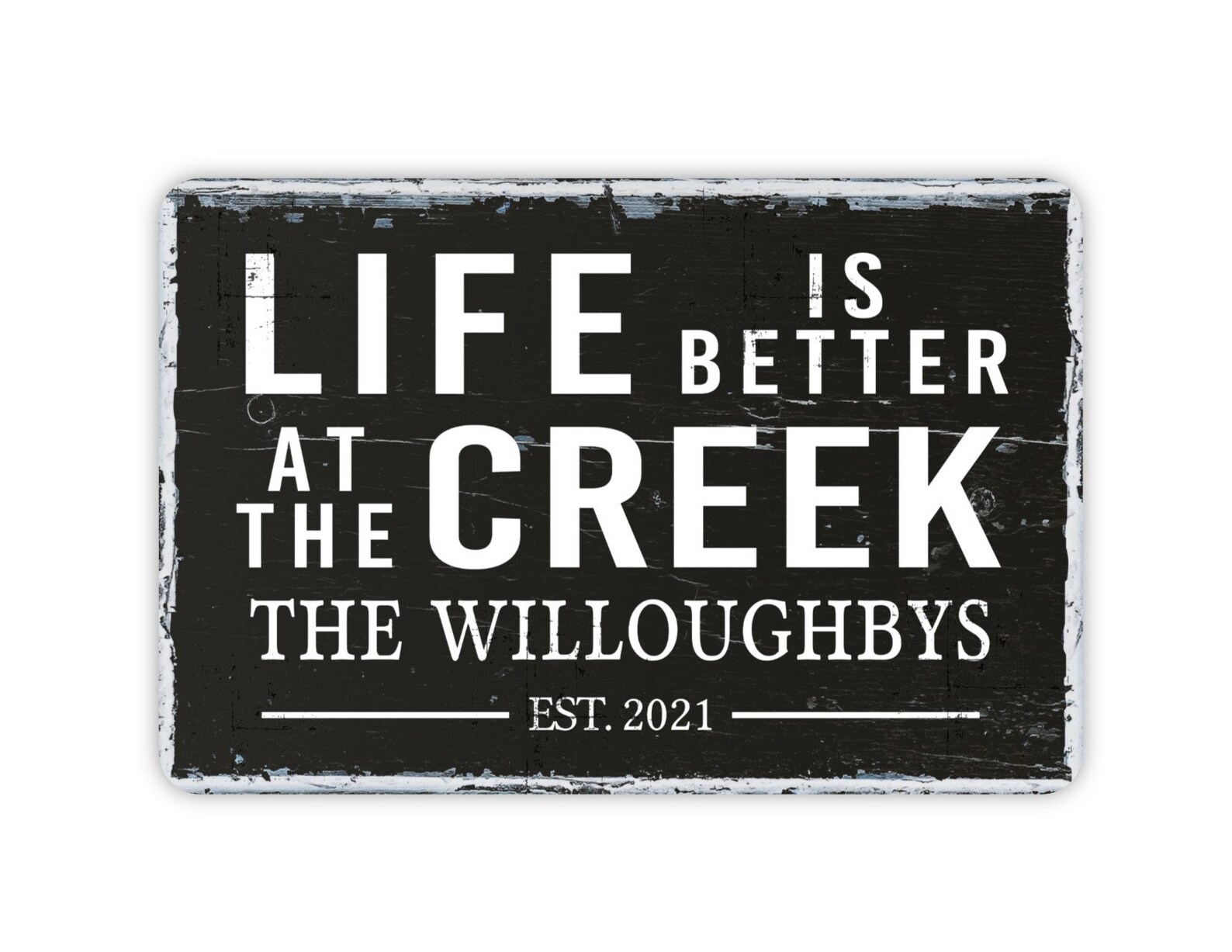 Design: Vintage Style Personalized Life Is Better At The Creek Metal Sign