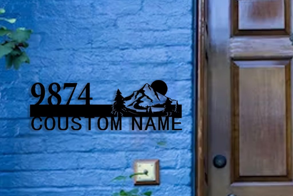 ***Modern Metal House Number Sign – Address Plaque – Vintage Style House Number – Address Plaque with Street Name – Classic Street Number Sign***