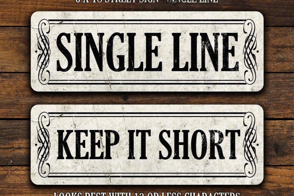 Let your imagination run wild with these super affordable vintage-style, rusty, weathered-look 6 X 18 signs. Light weight and durable, these nifty signs are made to order in the USA. These custom signs will look perfect in any kitchen, home, bar, pub, bath, office, garage, and business. Our signs are made from .032 UV treated aluminum, which means they9;re built to last. Sublimation creates a super tough image that is fused into the surface of the metal making it almost impossible to scratch. You can install these signs anywhere indoors or outdoors though we do recommend not placing them in direct sunlight to avoid fading over time.
