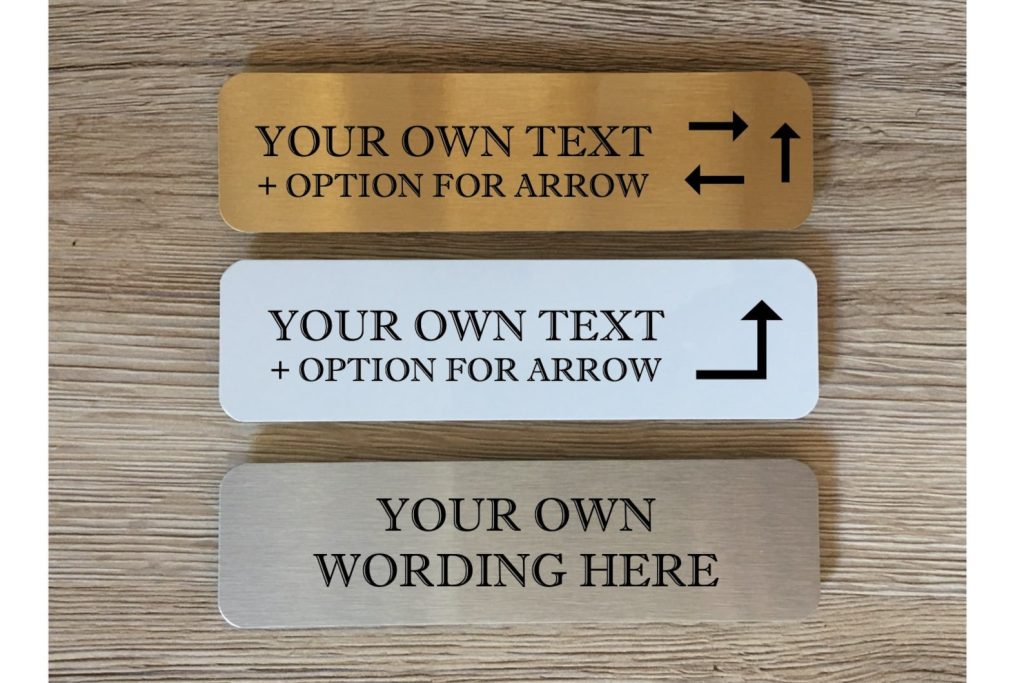If you would like to substitute the text on your sign with your own text select the 9;Own Text9; option on both drop-down menus and let us know what you would like in the personalisation box above OR in the 9;Notes to Seller9; box at checkout. PLEASE SELECT THE OWN TEXT OPTION if you want to add an arrow to your sign. If you would like an arrow incl, please let us know which direction you would like it to point and where you would like it positioned on your sign (e.g. top, bottom, left or right).