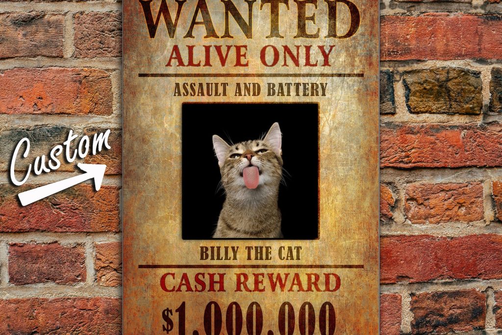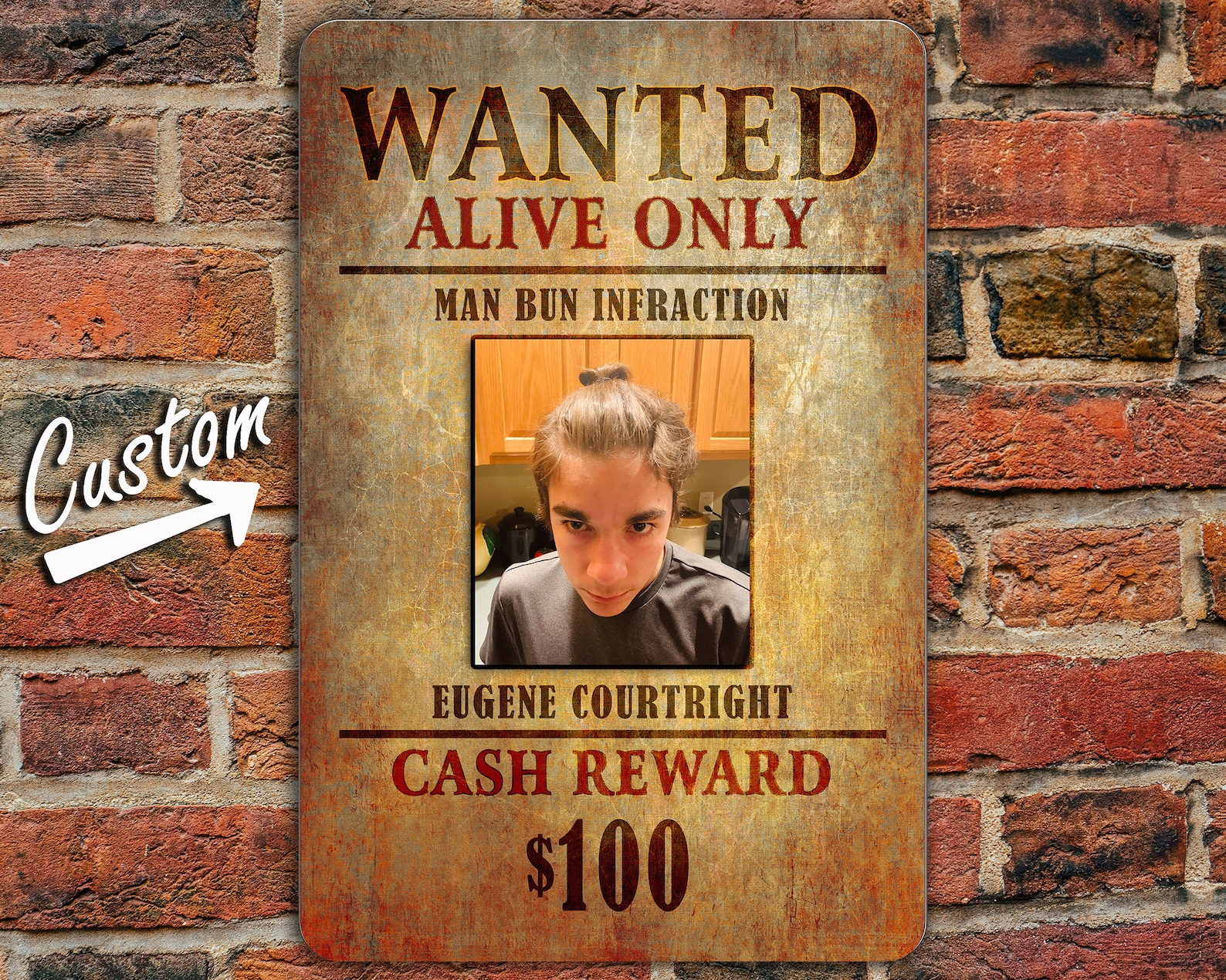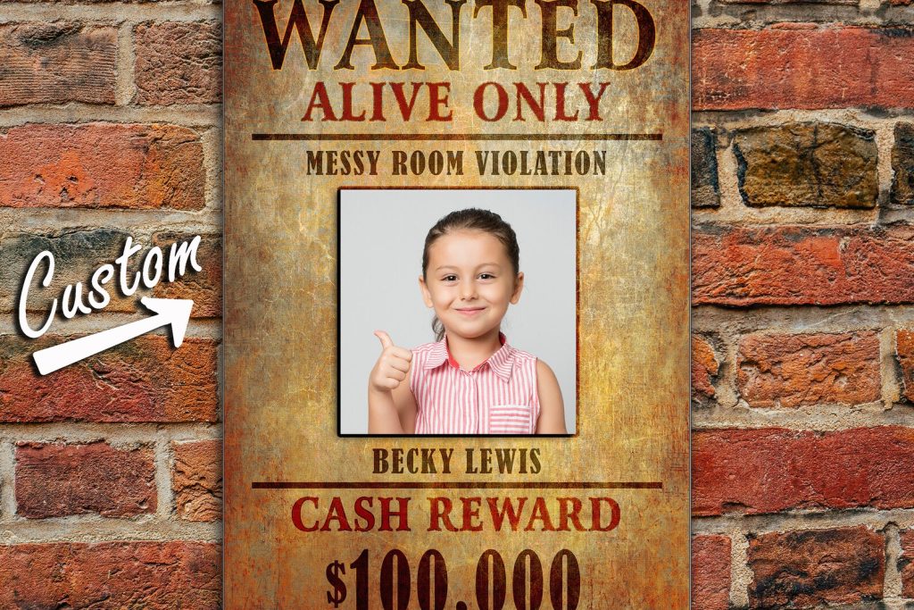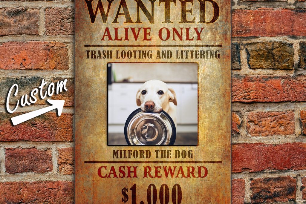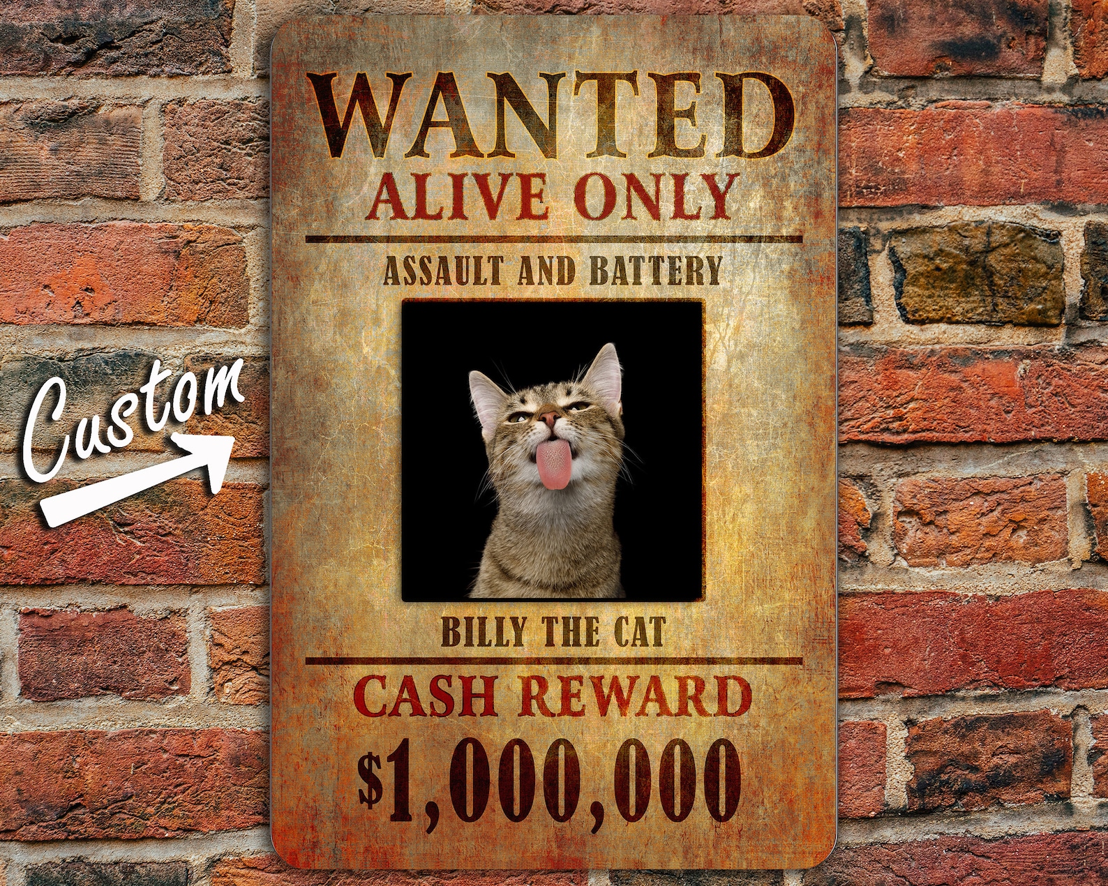 Personalized Wanted Sign. Customize this sign with a photo, choose a crime, add a name, and pick a reward amount! This sign can be given to almost anybody, from kids to pets! Use your imagination and make someone9;s day with this unique one-of-a-kind gift! The antique design will look great anywhere you choose to hang it!
