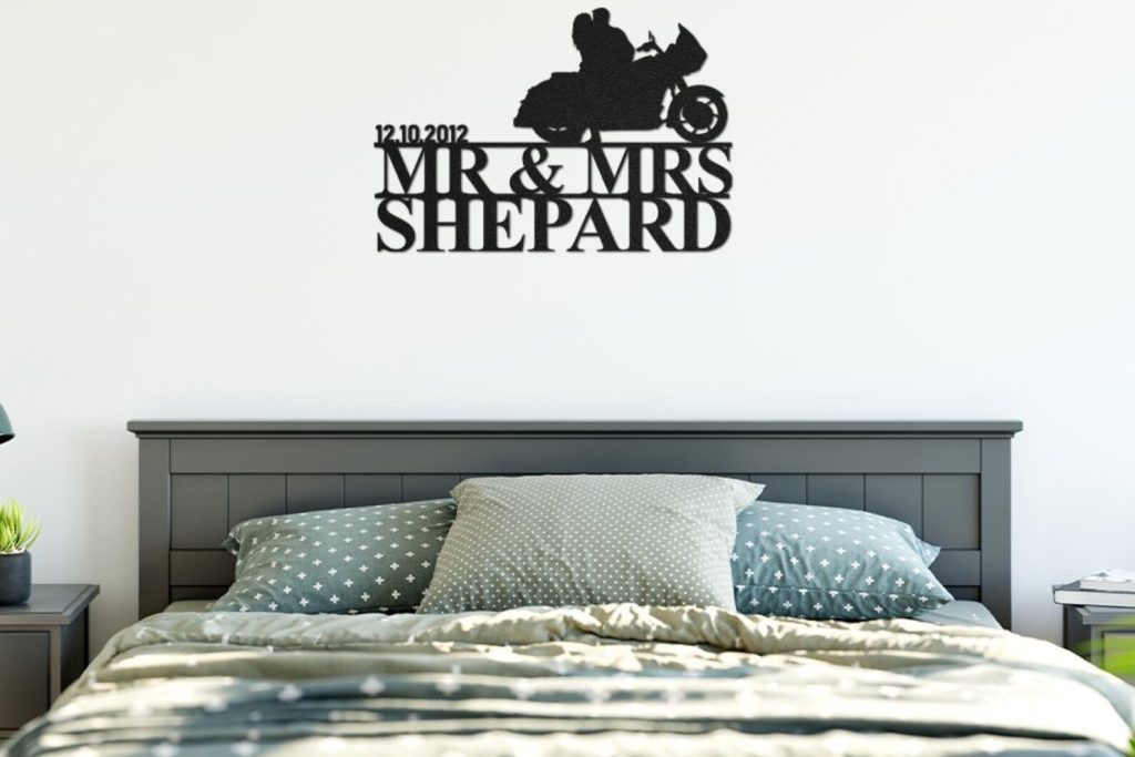 PERSONALIZED Wedding Date Sign – Married Husband Wife Biker Couple Metal Wall Art Wedding / Anniversary / Birthday Gift
