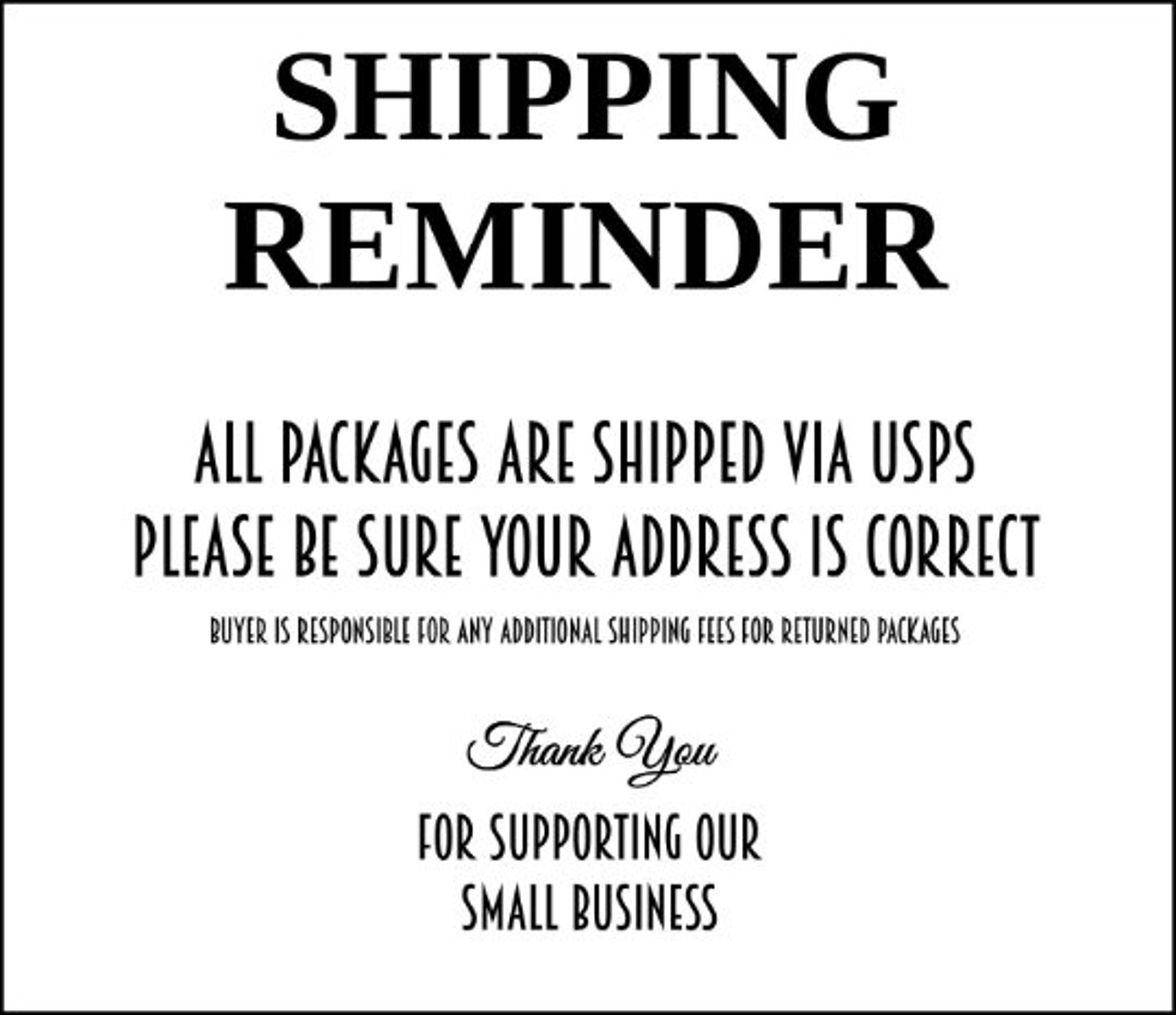 All signs ship via USPS – please make sure your address is correct 🙂