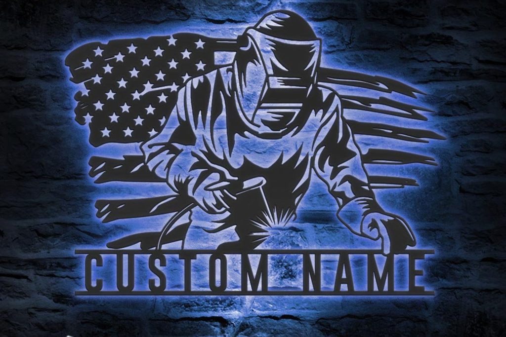 Be the first to review “Welding US Flag Sign, LED Light, Ironworker Gift”
