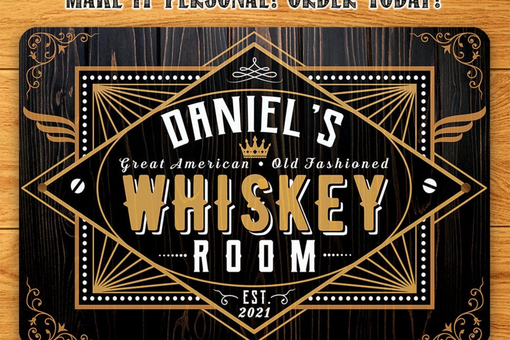 Tin – Personalized Whiskey Room Metal Sign – 8" x 12" or 12" x 18" Use Indoor/Outdoor – Bar, Pub, and Mancave Decor