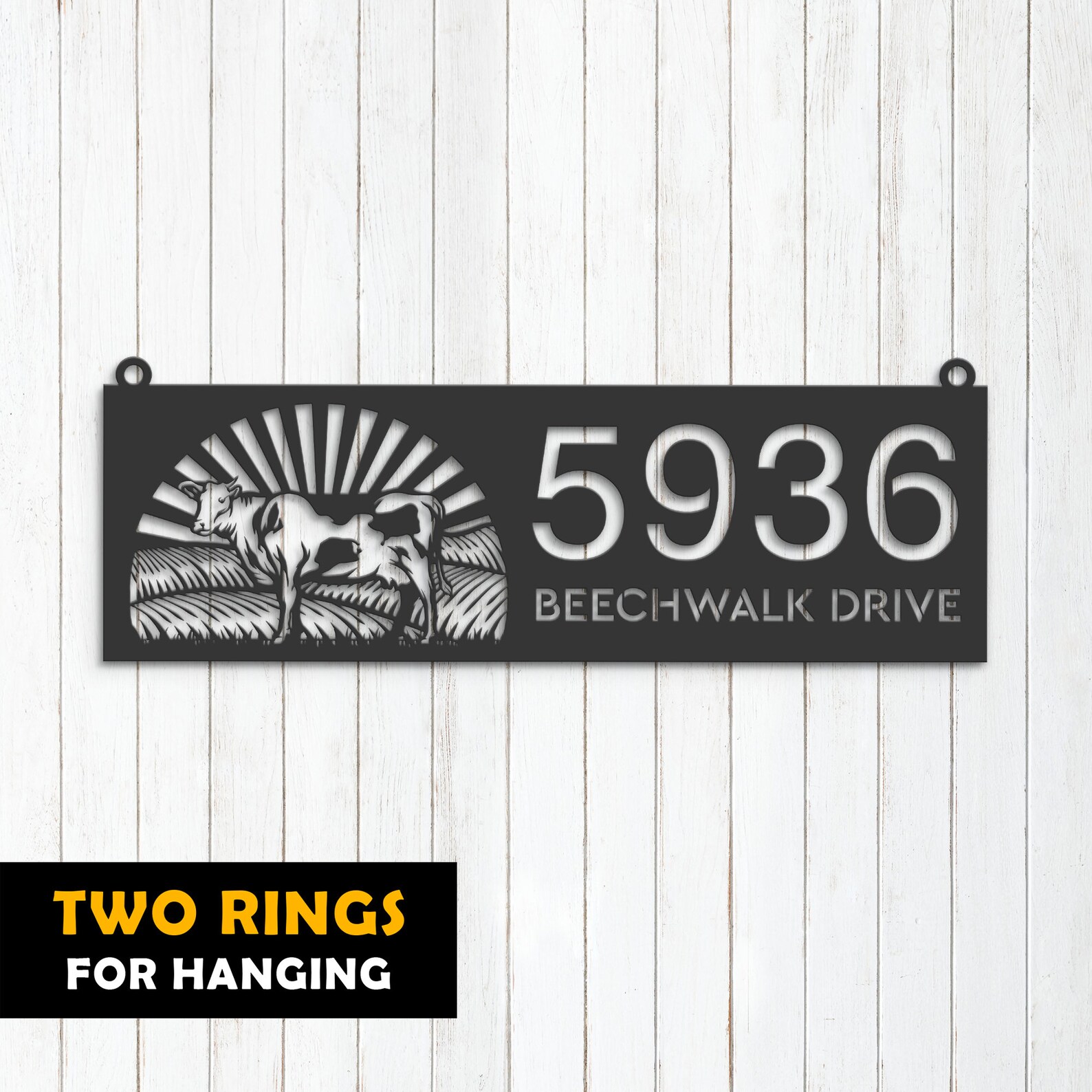 Additionally, our address sign comes in four different styles to ensure that it meets your needs. The mounting holes style is perfect for those who want to attach the sign directly to their building. Rings for hanging are great for those who want to hang the sign from a fence or wall. The attached stakes style is perfect for those who want to place the sign in their lawn, and the bolted stakes style is great for those who want to ensure that the sign is secure and sturdy.