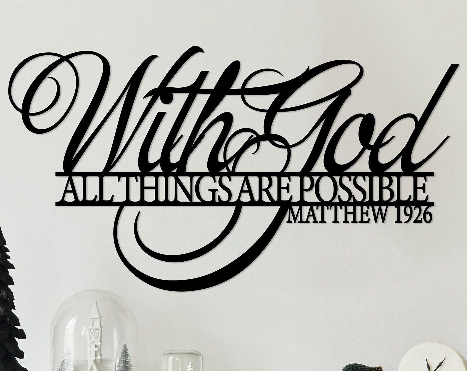 With God All Things Are Possible Metal Wall Sign, Religiosus Scripture Sign, Christian Words, Bible Verse Sign,Farmhouse Decor,Matthew 19:26
