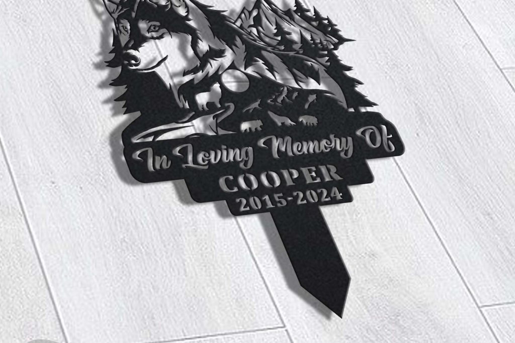 Wolf Memorial Stake – Custom Metal Sympathy Sign