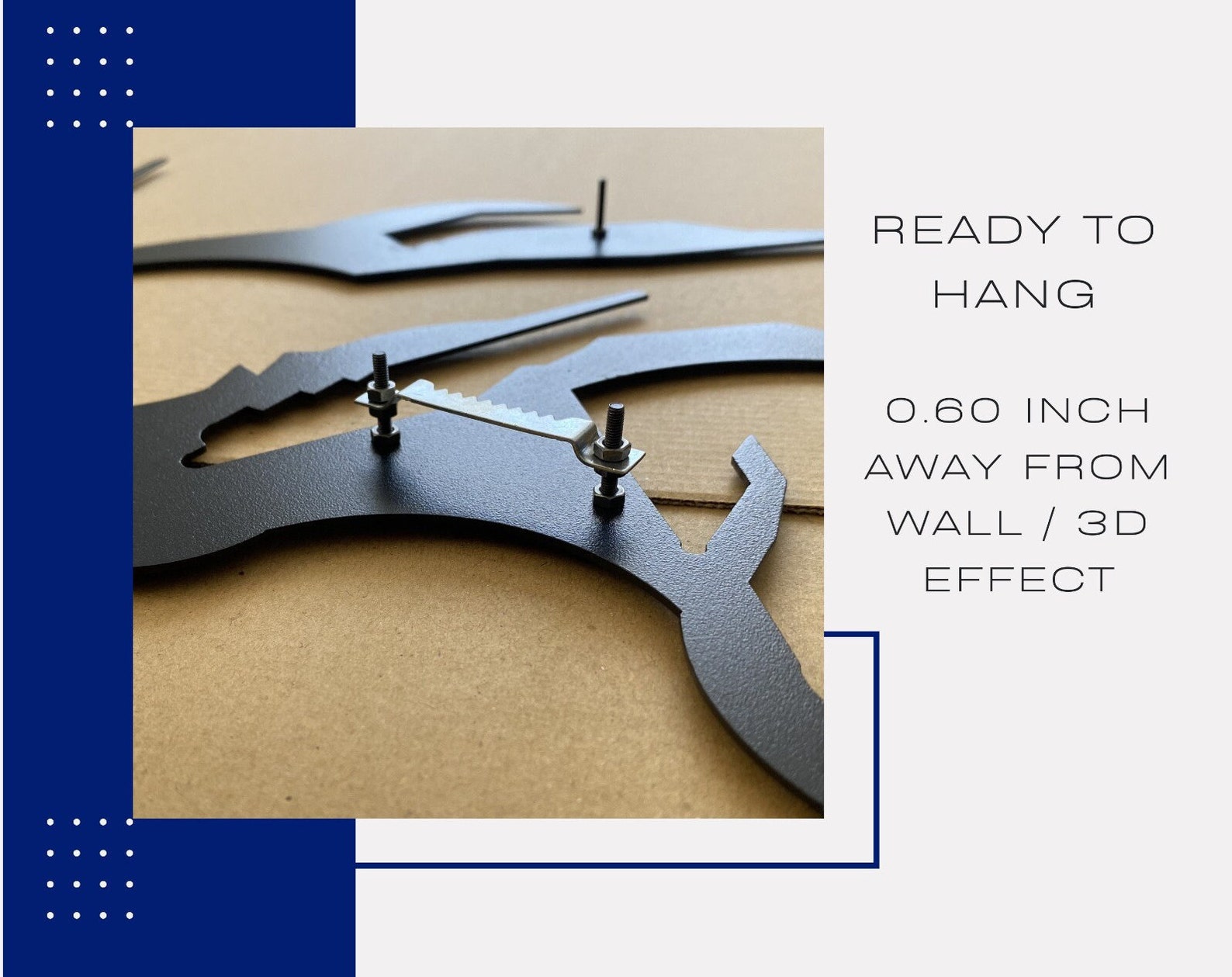 Material : Crafted from durable 2 mm steel, coated in a textured black static paint boasting a smooth matte finish. The item, designed with a captivating 3D shadow effect, extends 0.60 inches from the wall. Its robust construction allows it to withstand moisture-rich surroundings, making it suitable for areas like kitchens, bathrooms, and even outdoor spaces.