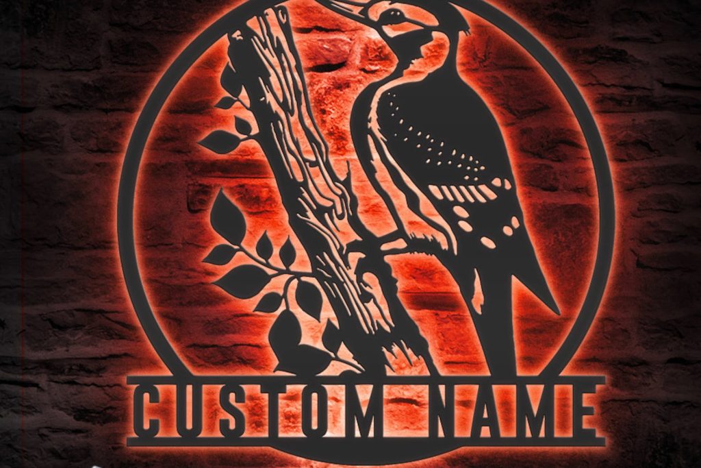 Be the first to review “Woodpecker LED Metal Wall Art – Custom Bird Lover’s Sign”