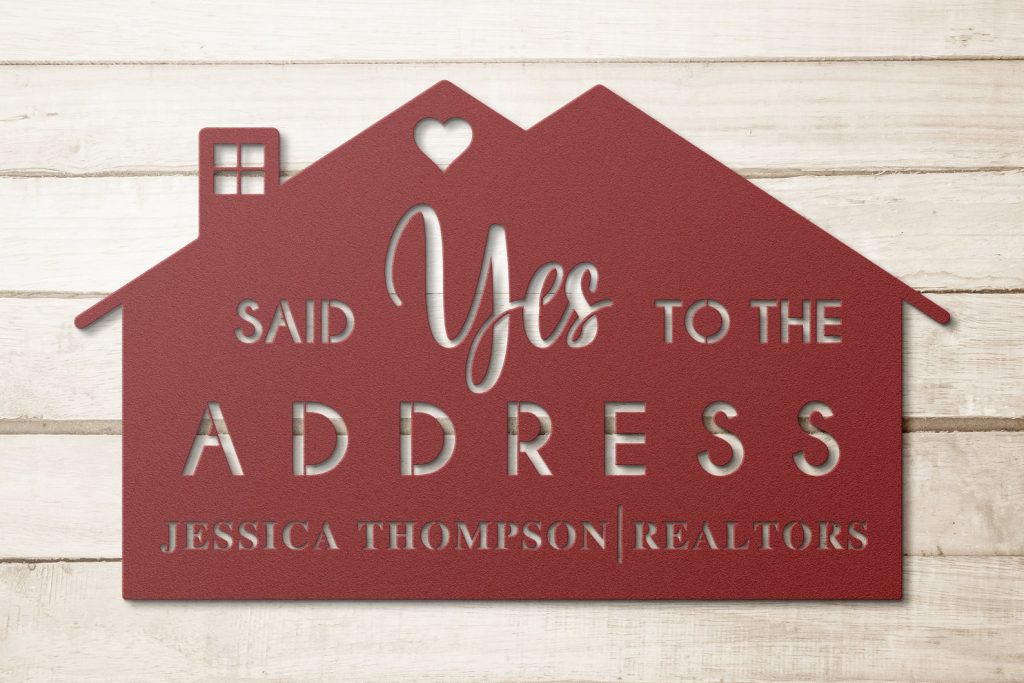 Are you a realtor looking to make a statement and close the deal with your clients? This Yes To The Address Sign is what you need and make an impression. Our Custom Realtor Sign is made from a laser cut of stunning 18 gauge steel which stands out in the environment and available in vibrant colors & sizes. Place it outside the newly sold property and everyone will know of your success!