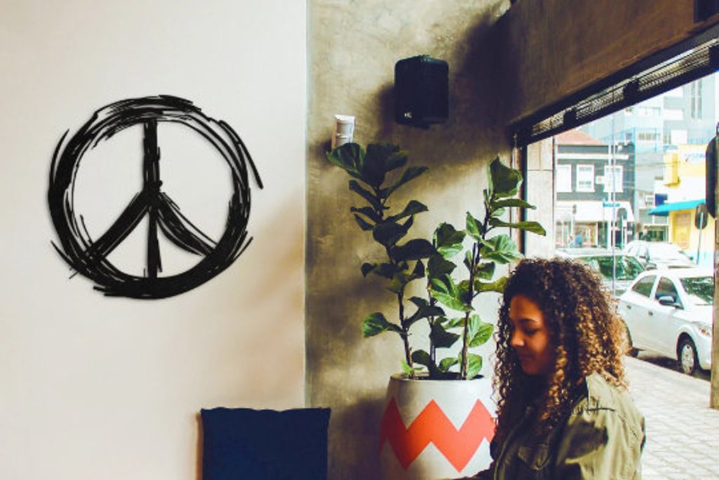 Zen Brush Design Peace Symbol – Metal Peace Sign, Metal Wall Decor
