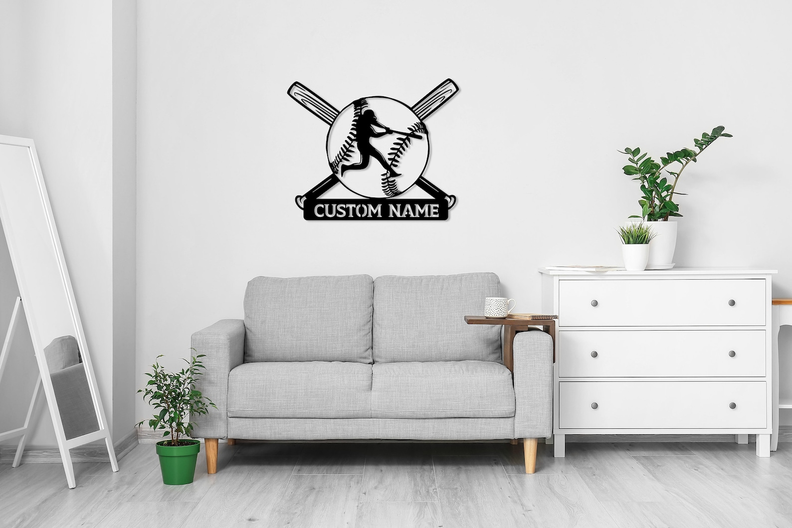 Metal Custom Name Baseball Wall Sign, Personalized Baseball Bat and Ball Wall Decor, Gift for Baseball Players, Custom Team or Name Sign, Art