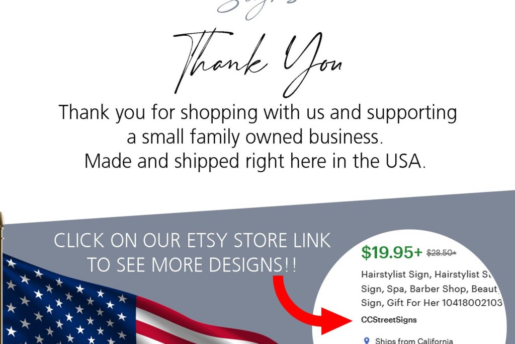 – All of our products (including our custom signs) ship within 1 to 2 business days from our shop in Chico, California. No more waiting weeks for your custom order. Get it to your door fast by shopping with us.