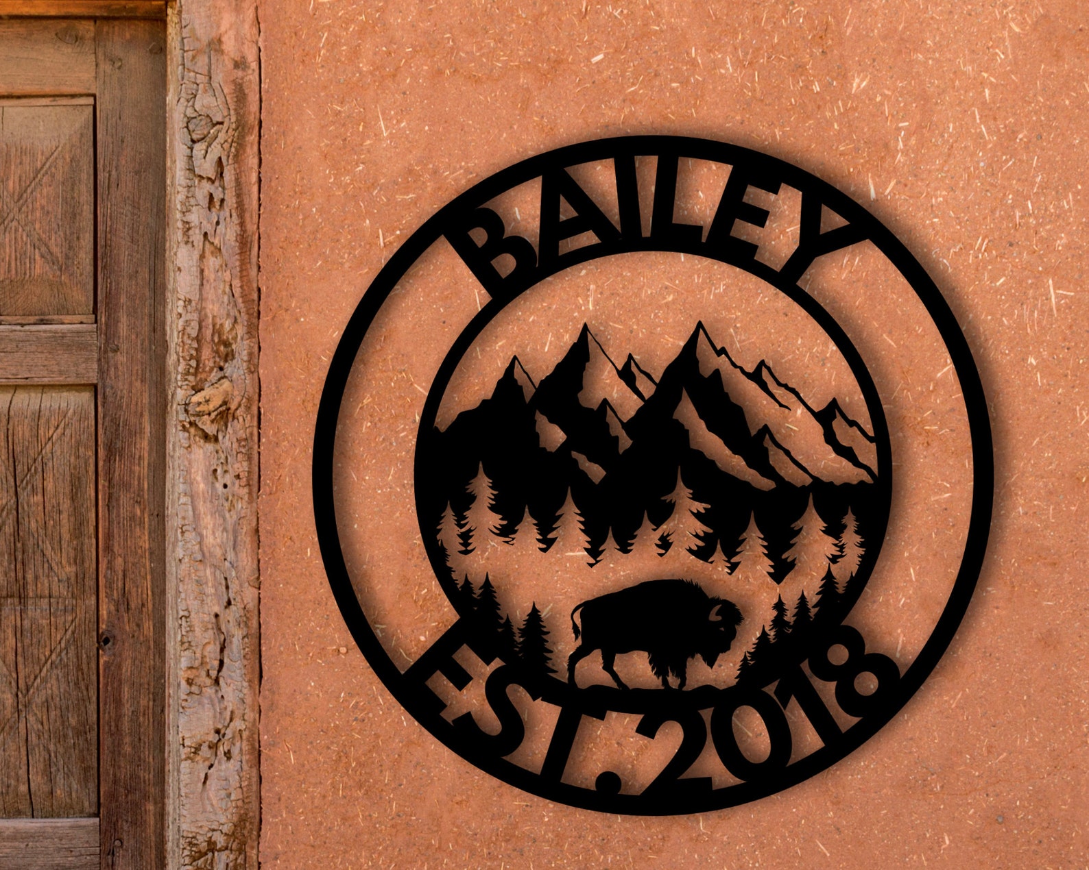 Beautiful Personalized Metal Sign with Mountains and Buffalo !