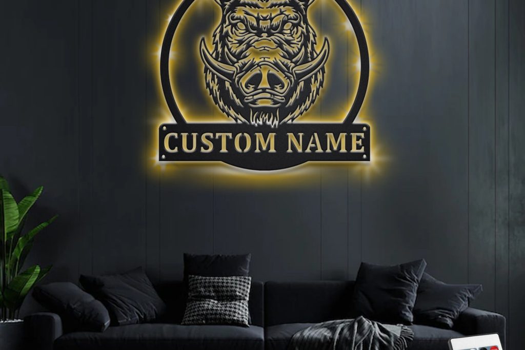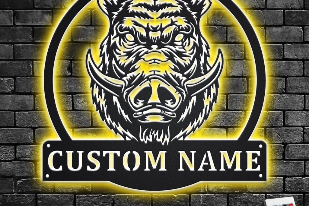 Be the first to review “Custom Boar Head Metal Art with LED Light”